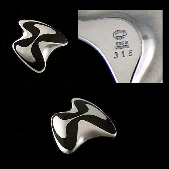 Georg Jensen Sterling Silver Brooch with Black Enamel #315 - Henning Koppel