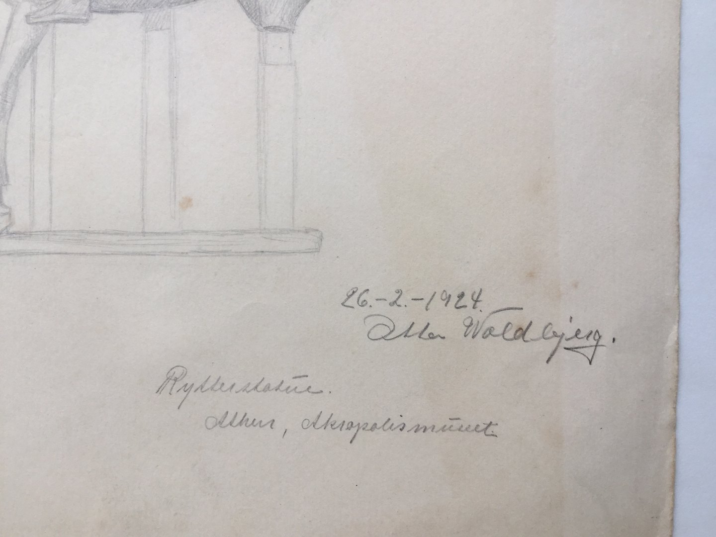 Tegning af Otto Woldbjerg Nielsen - Rytterstatue i Akropolismuseet, Athen 1924.