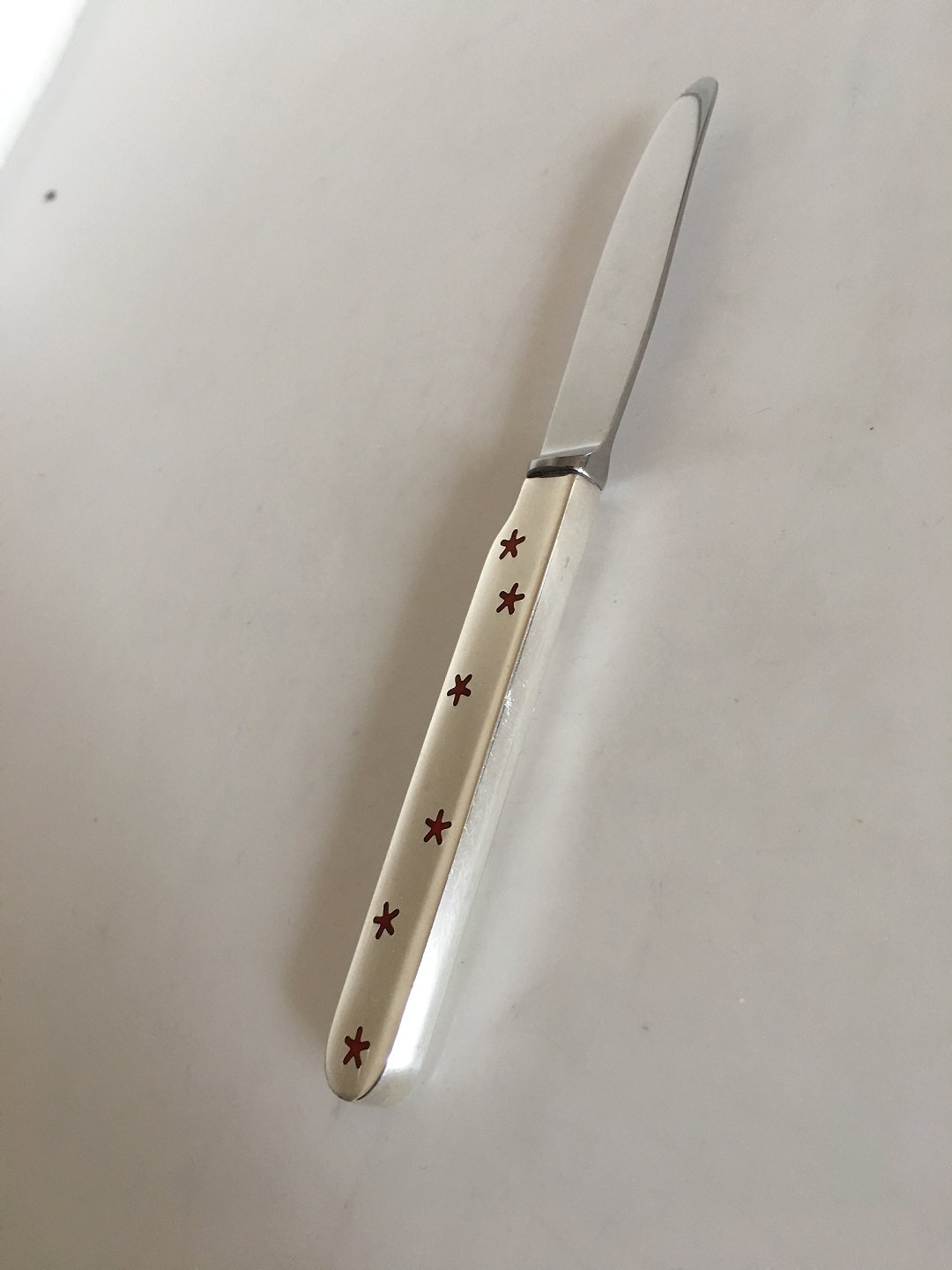 Anton Michelsen Sterling Sølv Barnekniv med Rødt Emalje Motiv. 16 cm L. I perfekt stand.