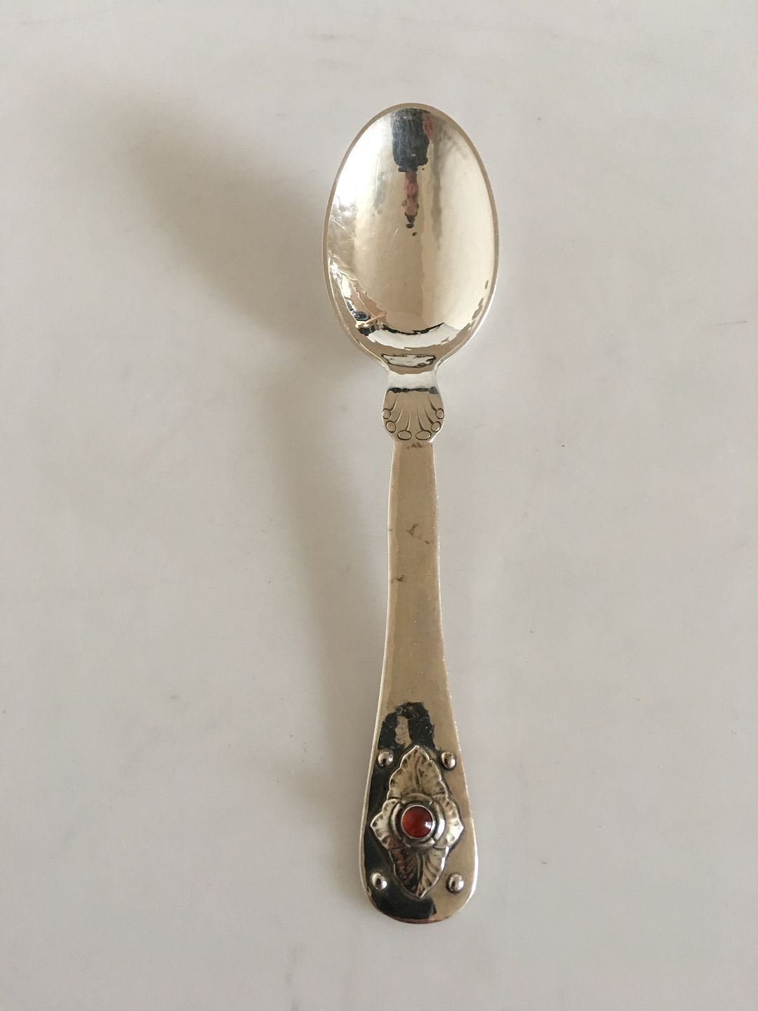 Georg Jensen Sterling Sølv 75 Års Jubilæums Barneske med Karneol