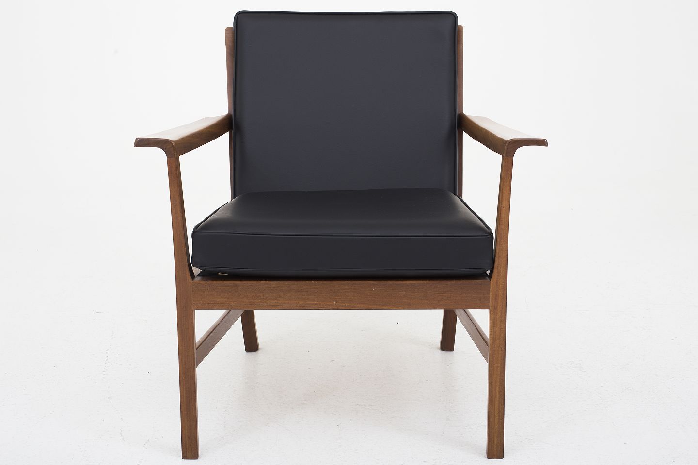 Lænestol i mahogni, nybetrukket med sort Savanne-læder
