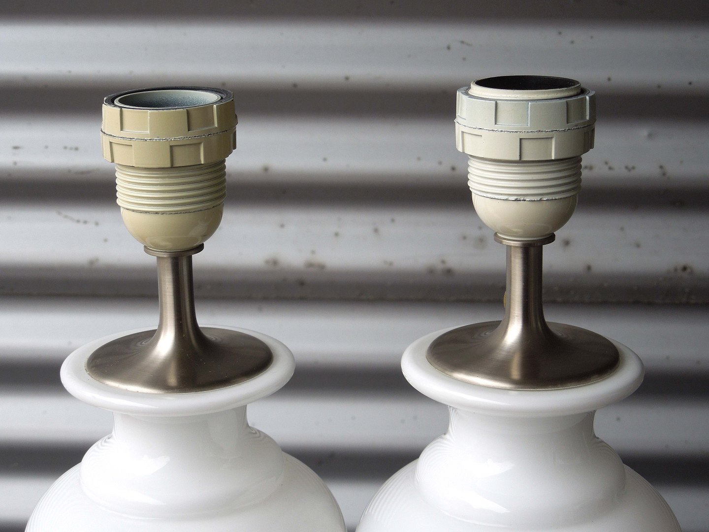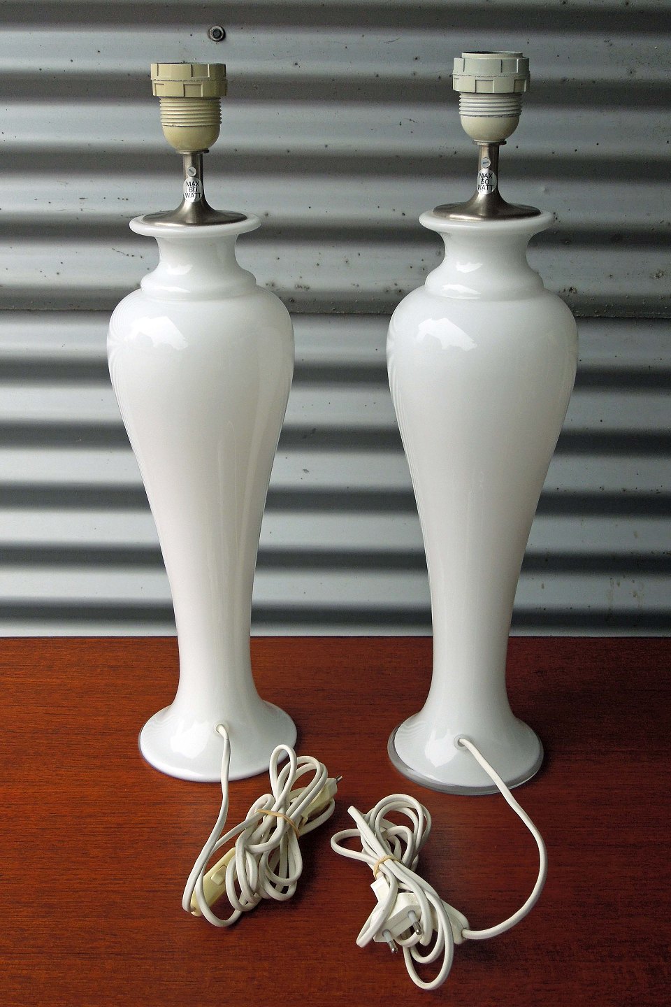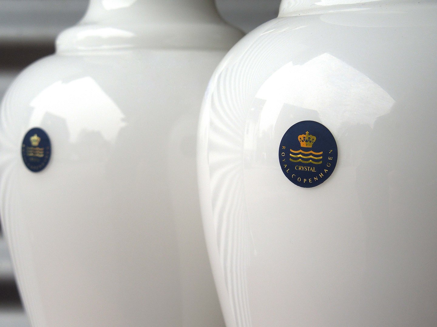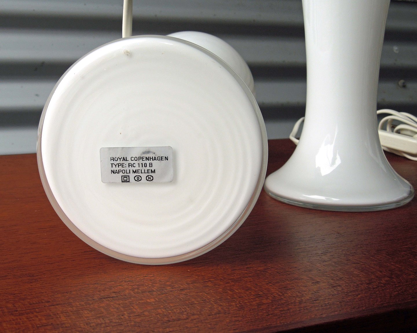 Royal Copenhagen, Napoli bordlampe, model nr. RC 110 B. Lamperne er fremstillet i opalhvid overfangsglas.