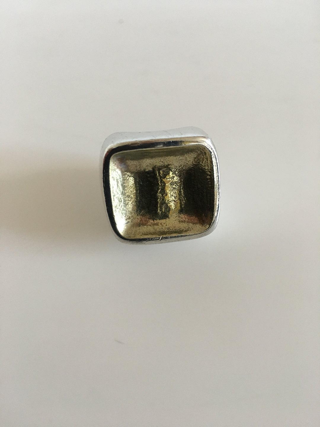 Hans Hansen Sterling Sølv delvist forgyldt Ring. Str. 53. Vejer 25 gram. 2 x 2 cm.