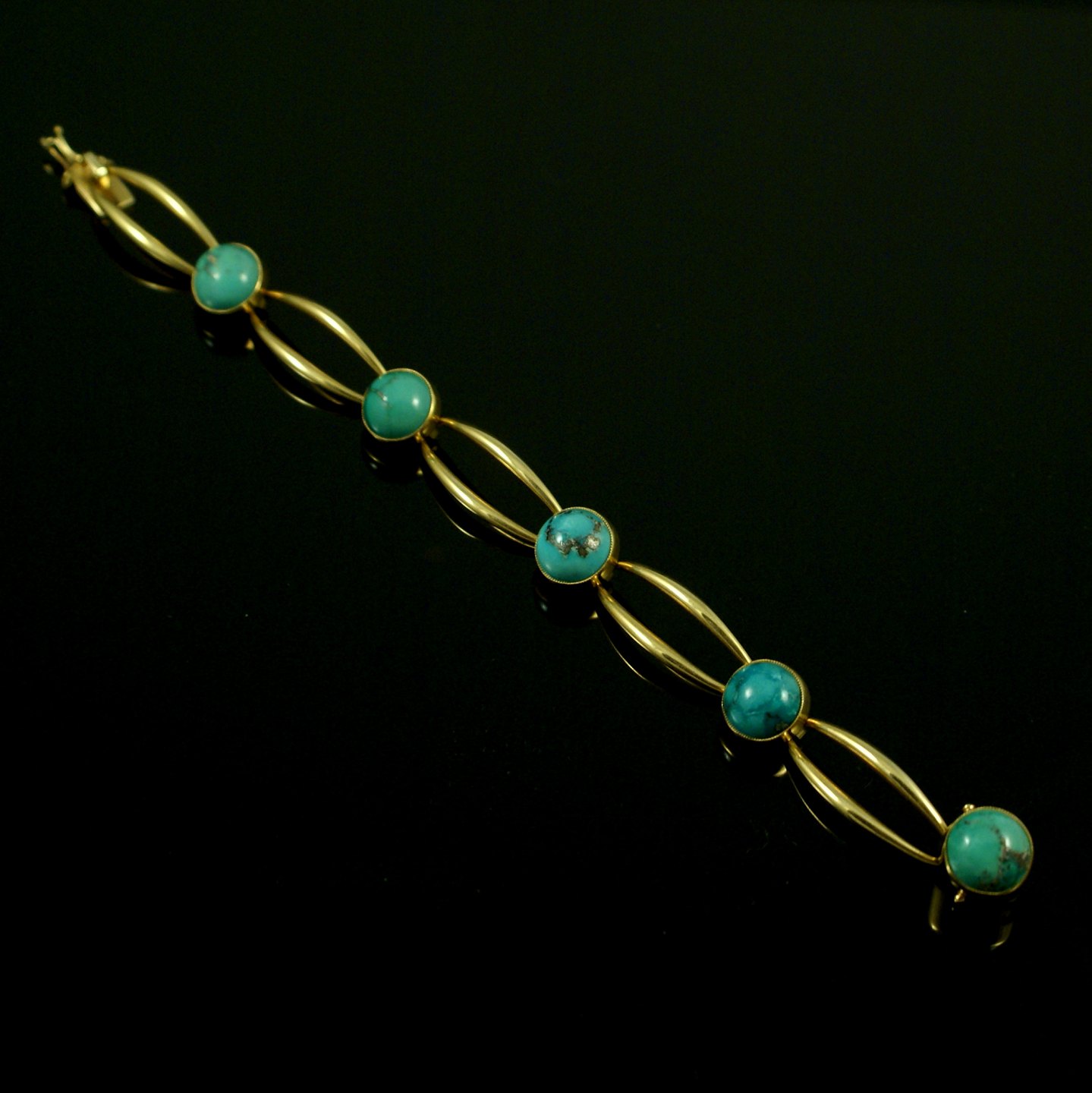 Hans Hansen Armbånd i 14k guld med turkiser #203. 1960erne