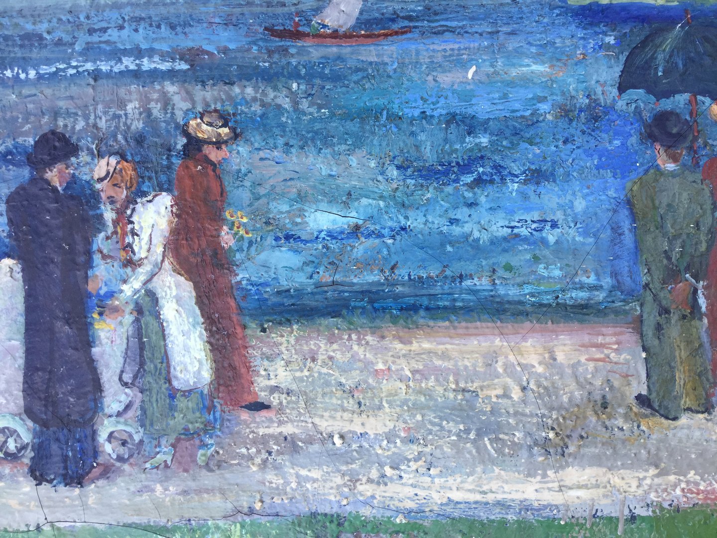 Bagpå blindramme - Udstillingsmærkat fra KE 1934 nr. 2 "Ved Søen" - Gorki Schmidt.