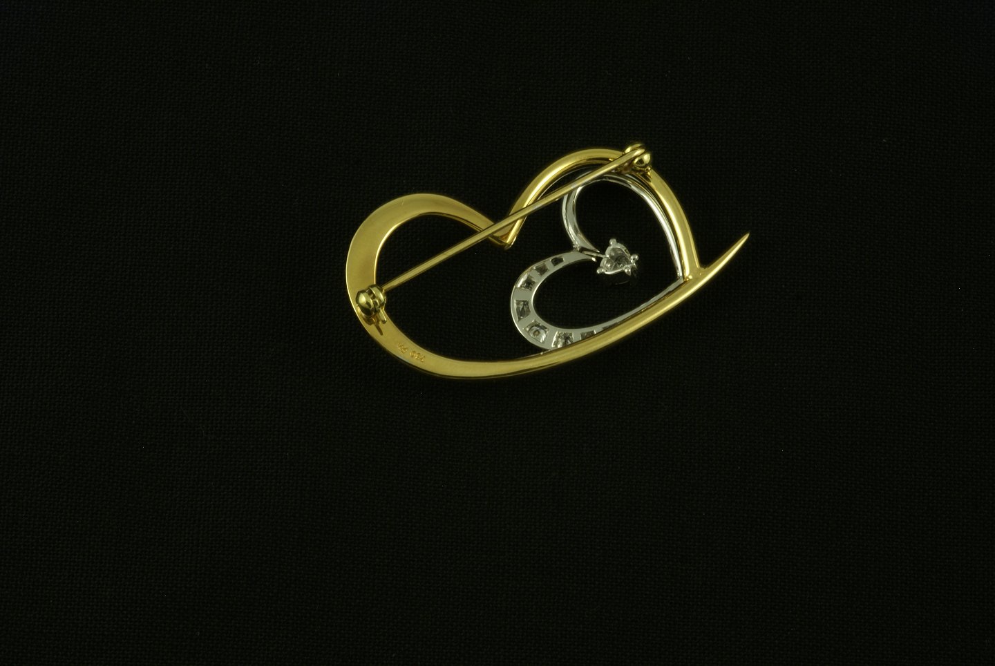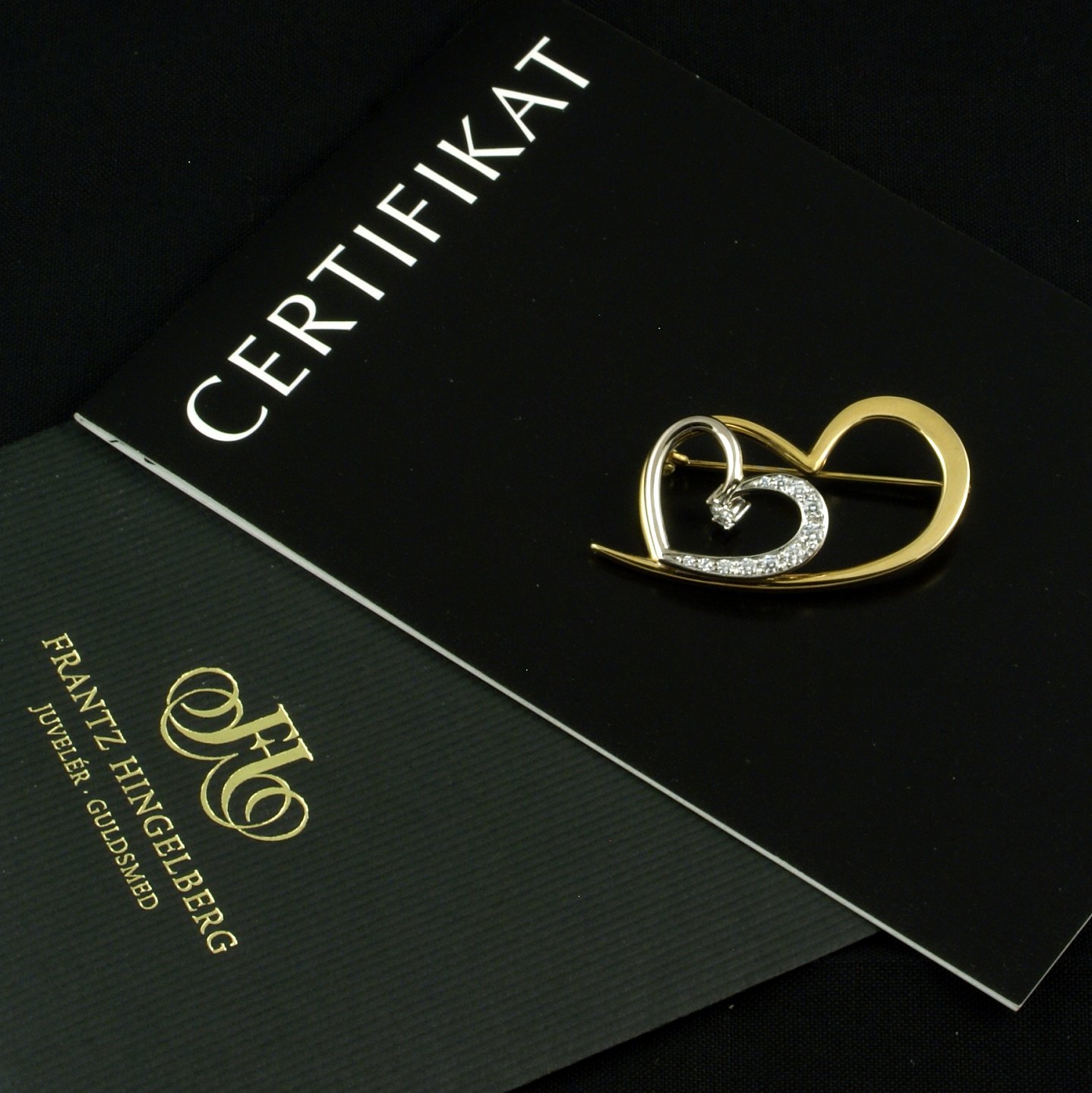 F. Hingelberg. Broche i 18k guld med diamanter. 'Hjerteknuser'