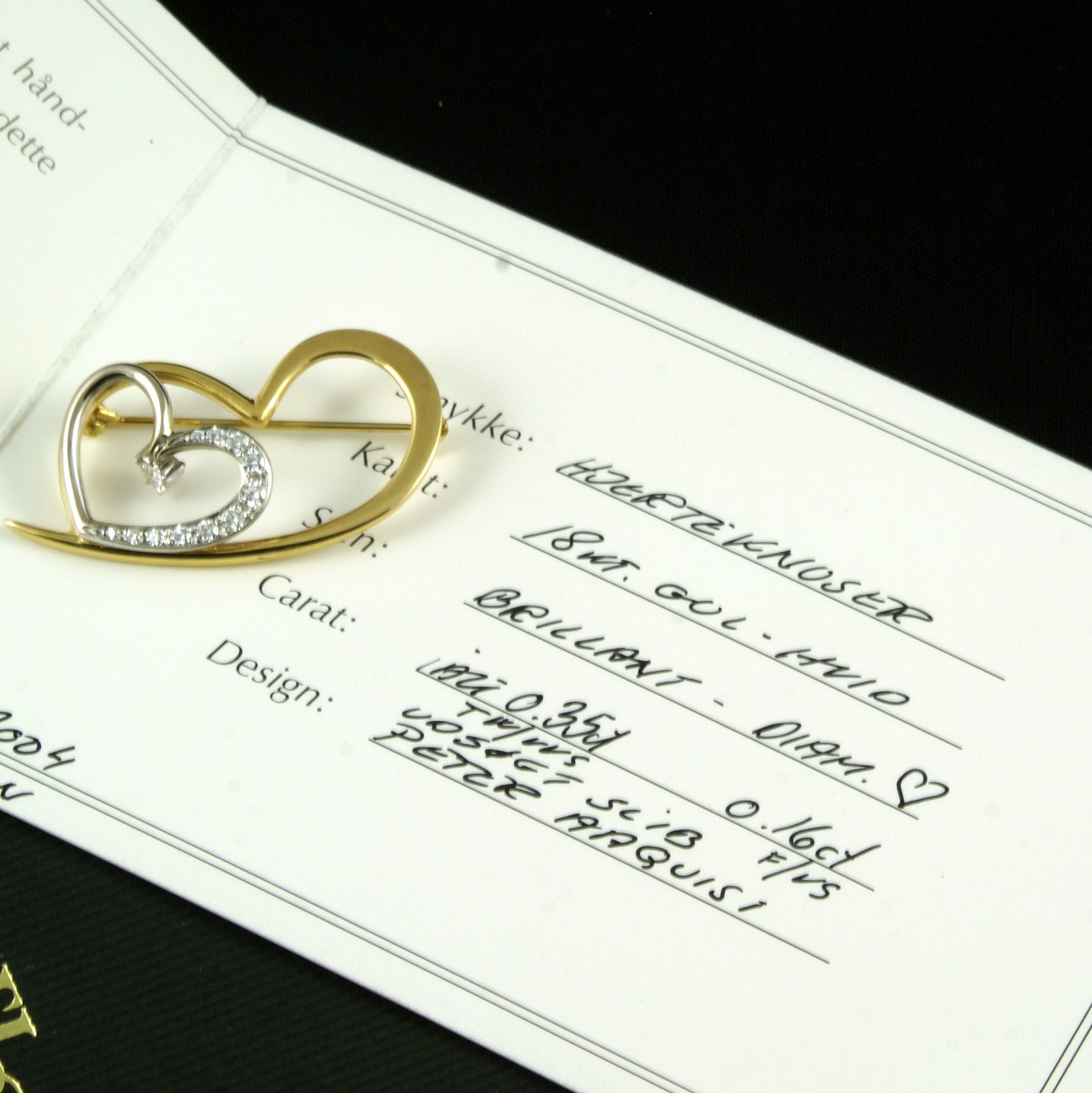 En hjerteslebet diamant 0.35ct and brilliantslebne diamanter 0.16 ct.