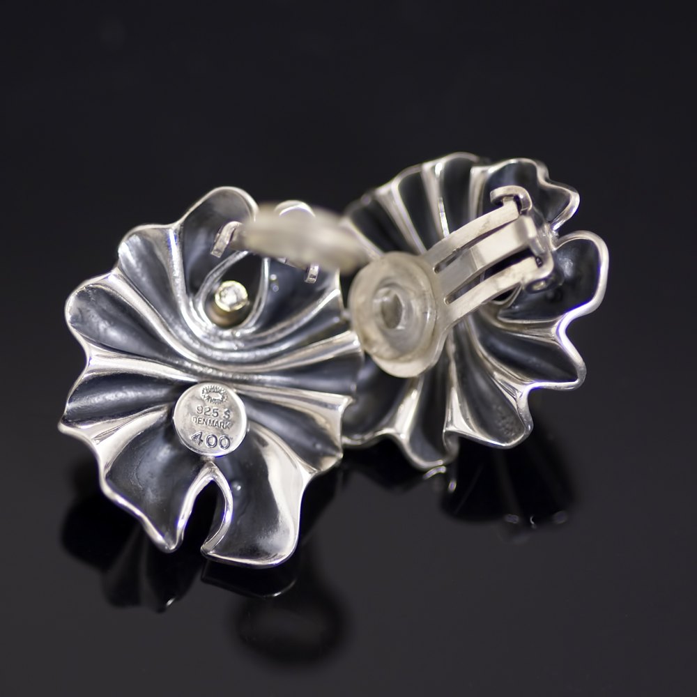 Georg Jensen. Sterling Silver Ear Clips with 18k Gold #400