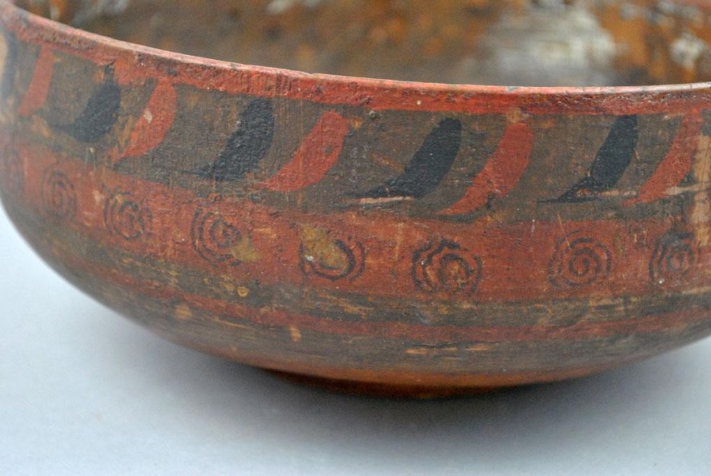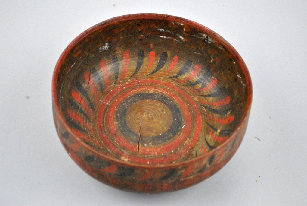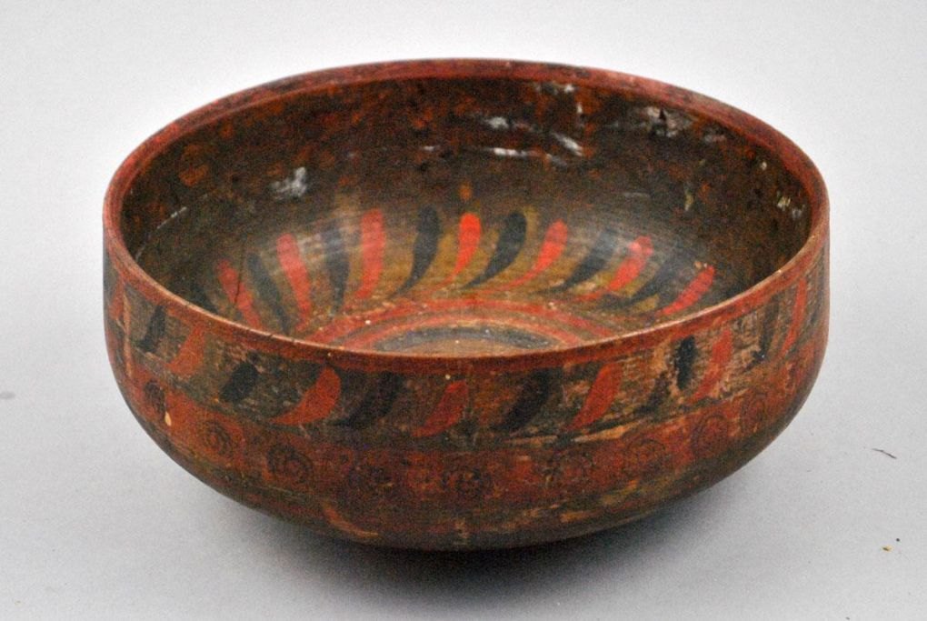 Russisk bowle af bemalet og dekoreret træ. 19. årh.