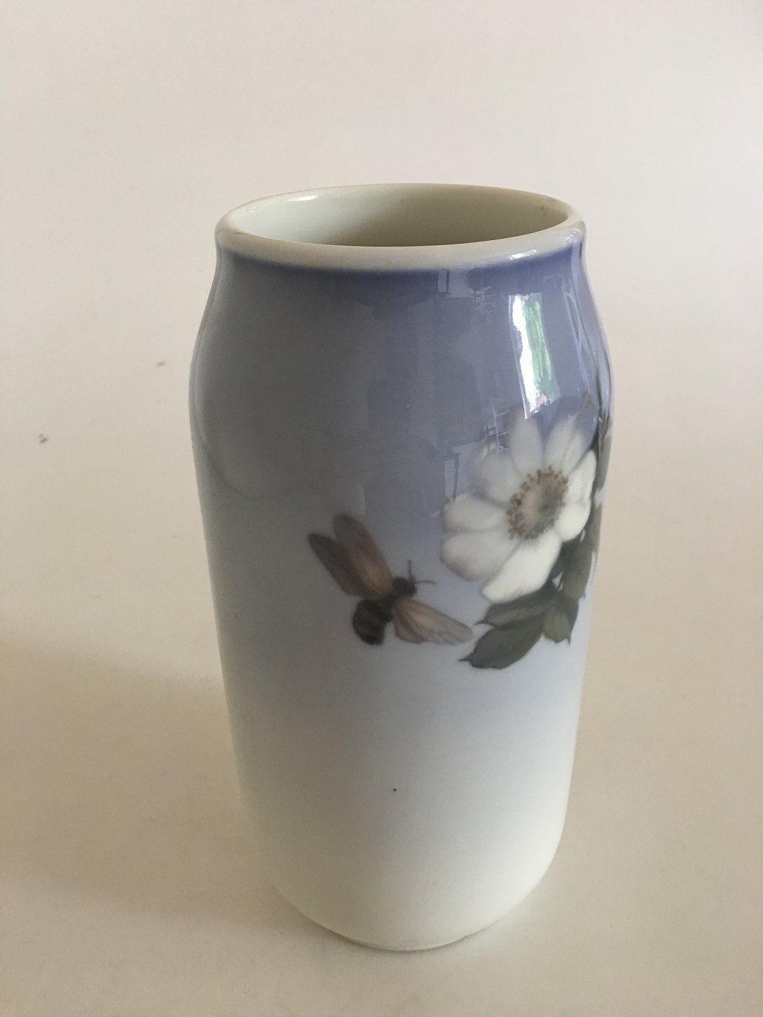 Royal Copenhagen Vase No 693/2304 med motiv af hvide roser og en bi