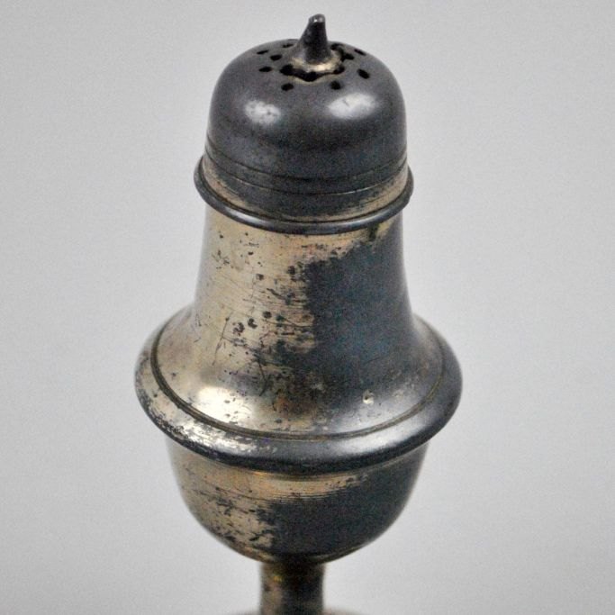 Engelsk peber bøsse i tin. 19. årh. H: 11 cm.