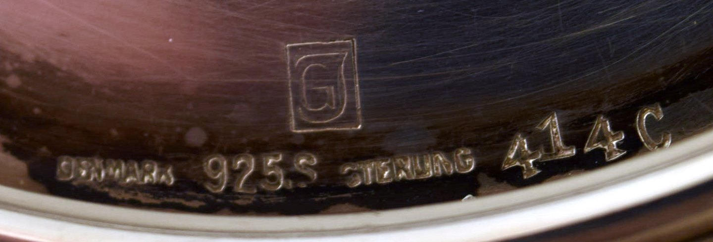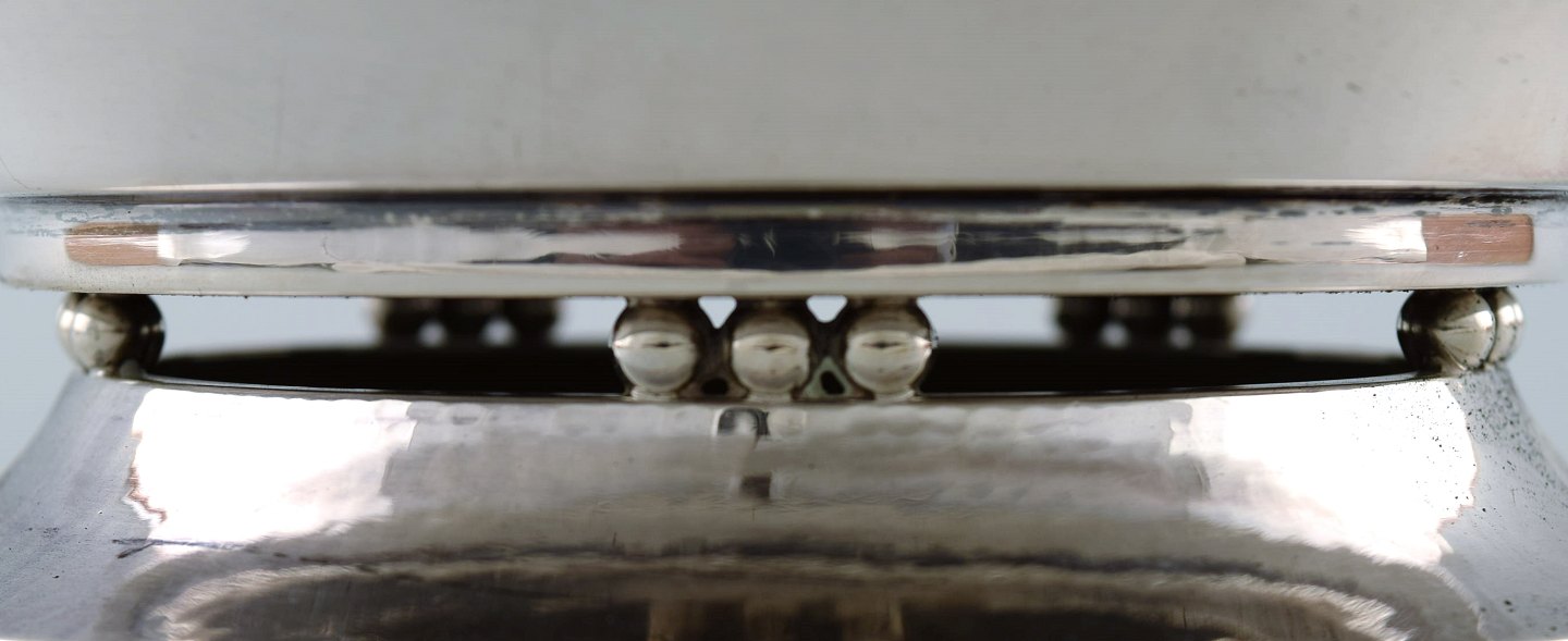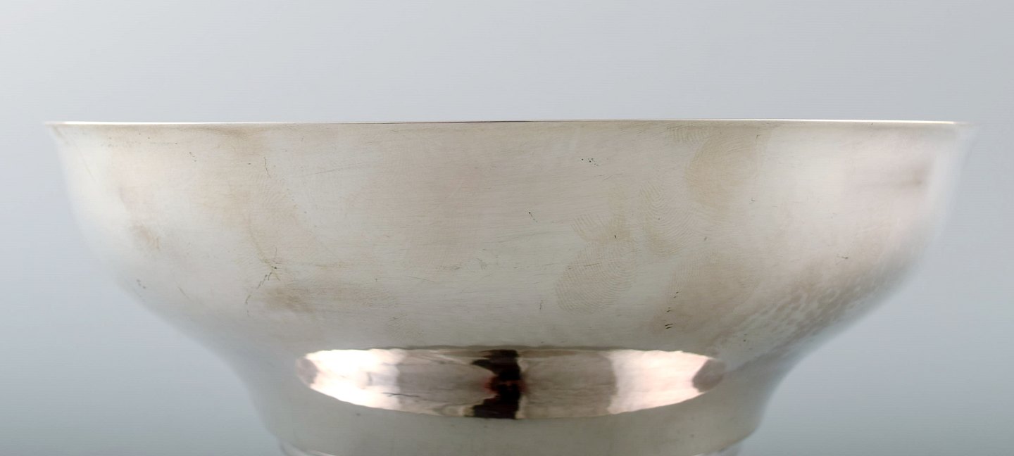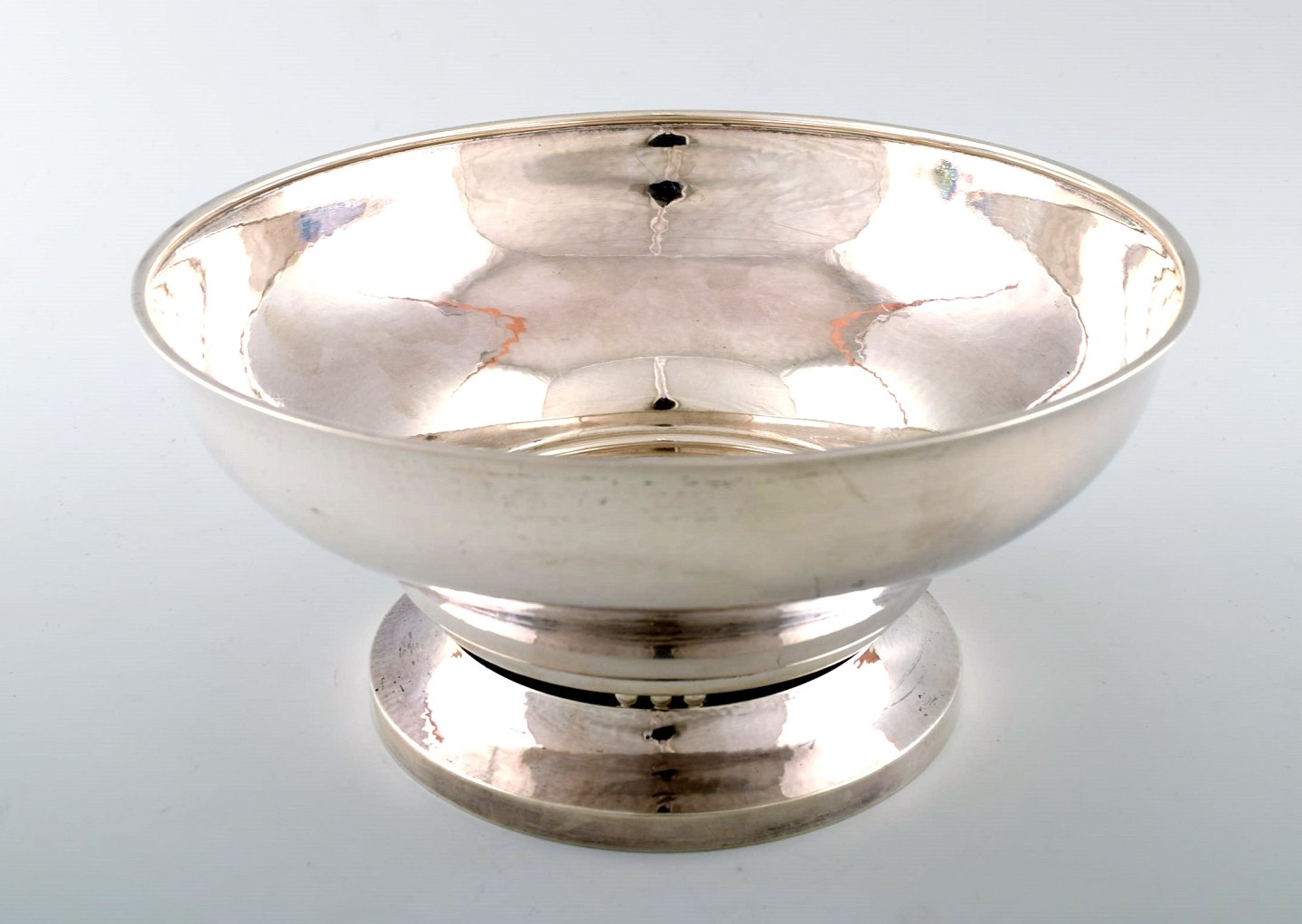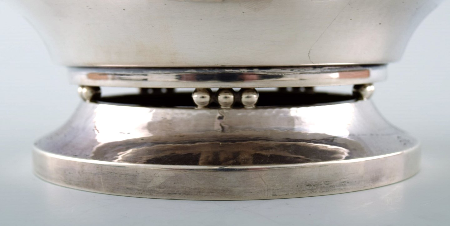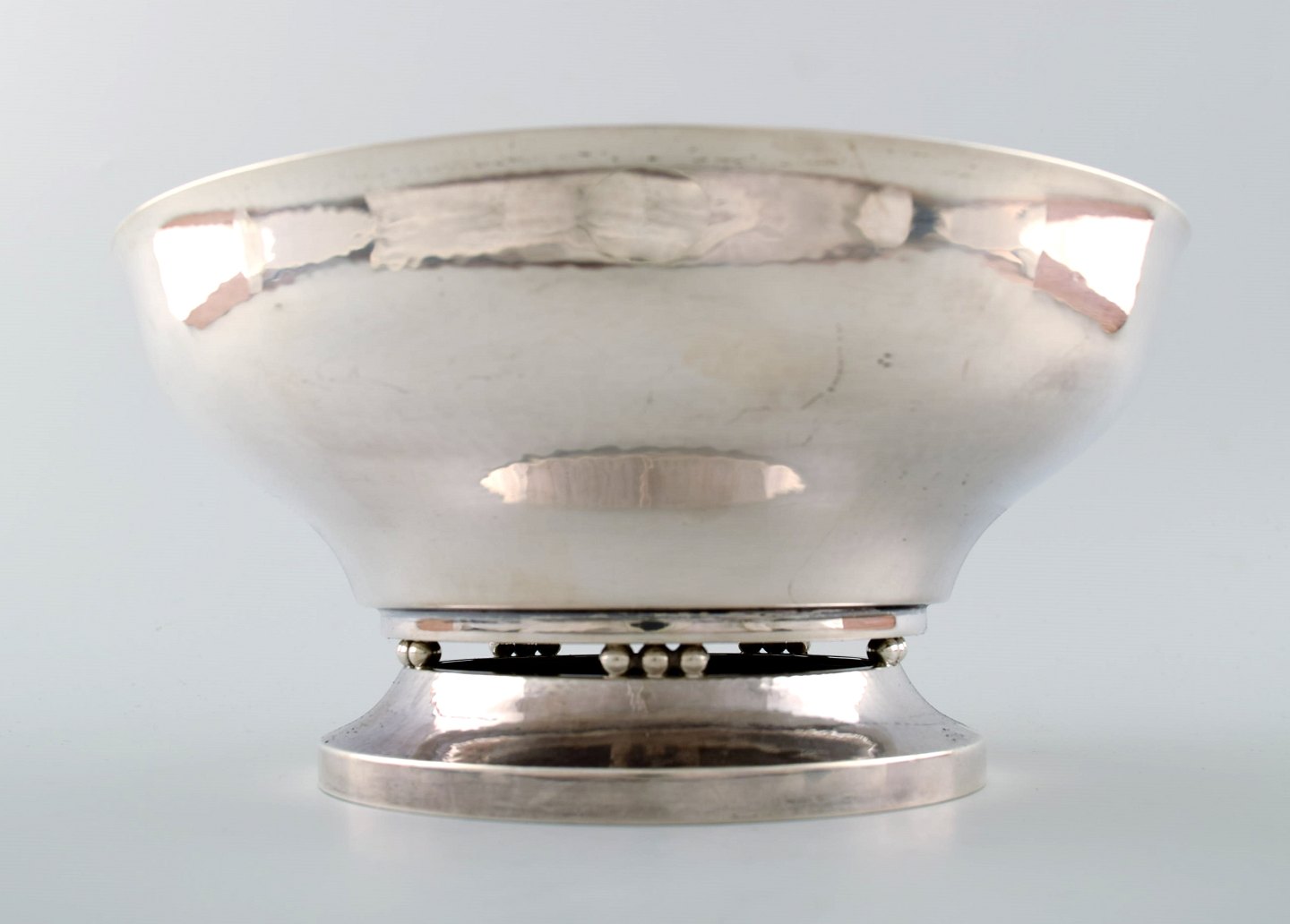 Skål af sterlingsølv med gennembrudt fodrand smedet med kugler, udført hos Georg Jensen ca. 1915-1927, dessin 414 c.