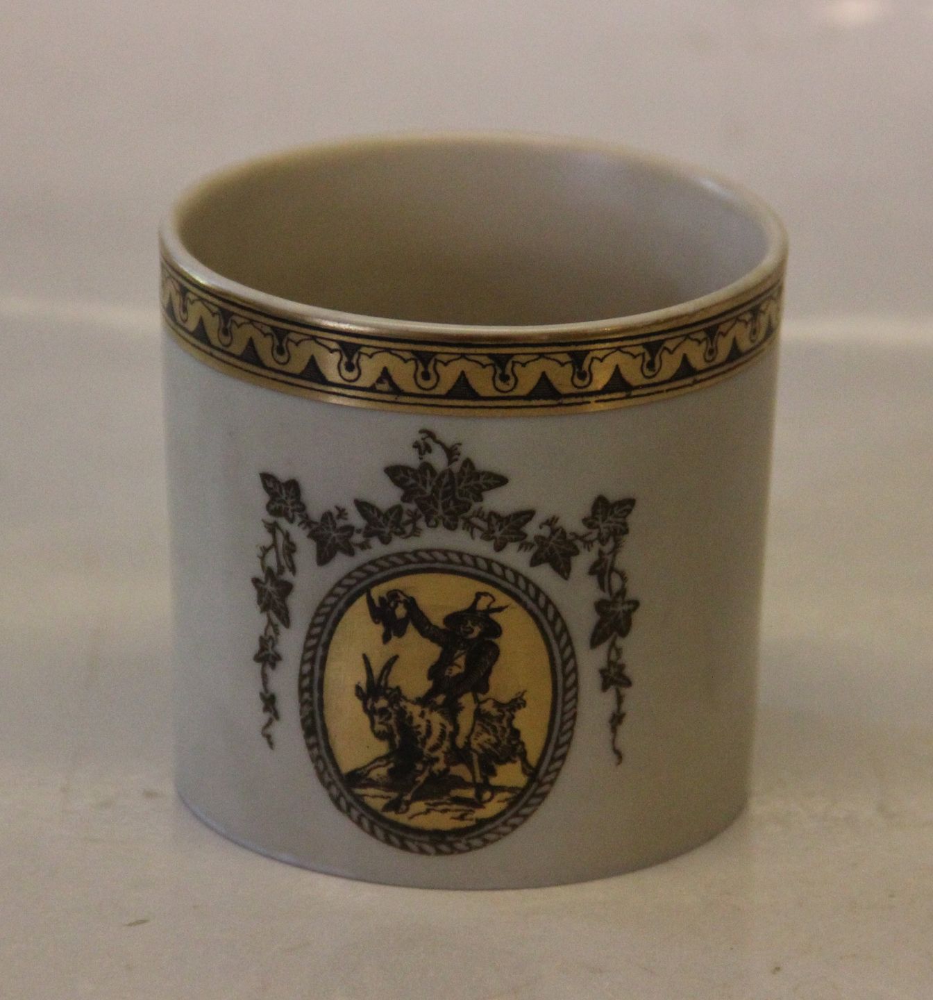 Kgl. 2009-28 Kgl. Vase 6.5 x 6.5 cm Klodshans fra Royal Copenhagen I hel og fin stand. C. Andersen tema i guld på Aluminias matte porcelæn
