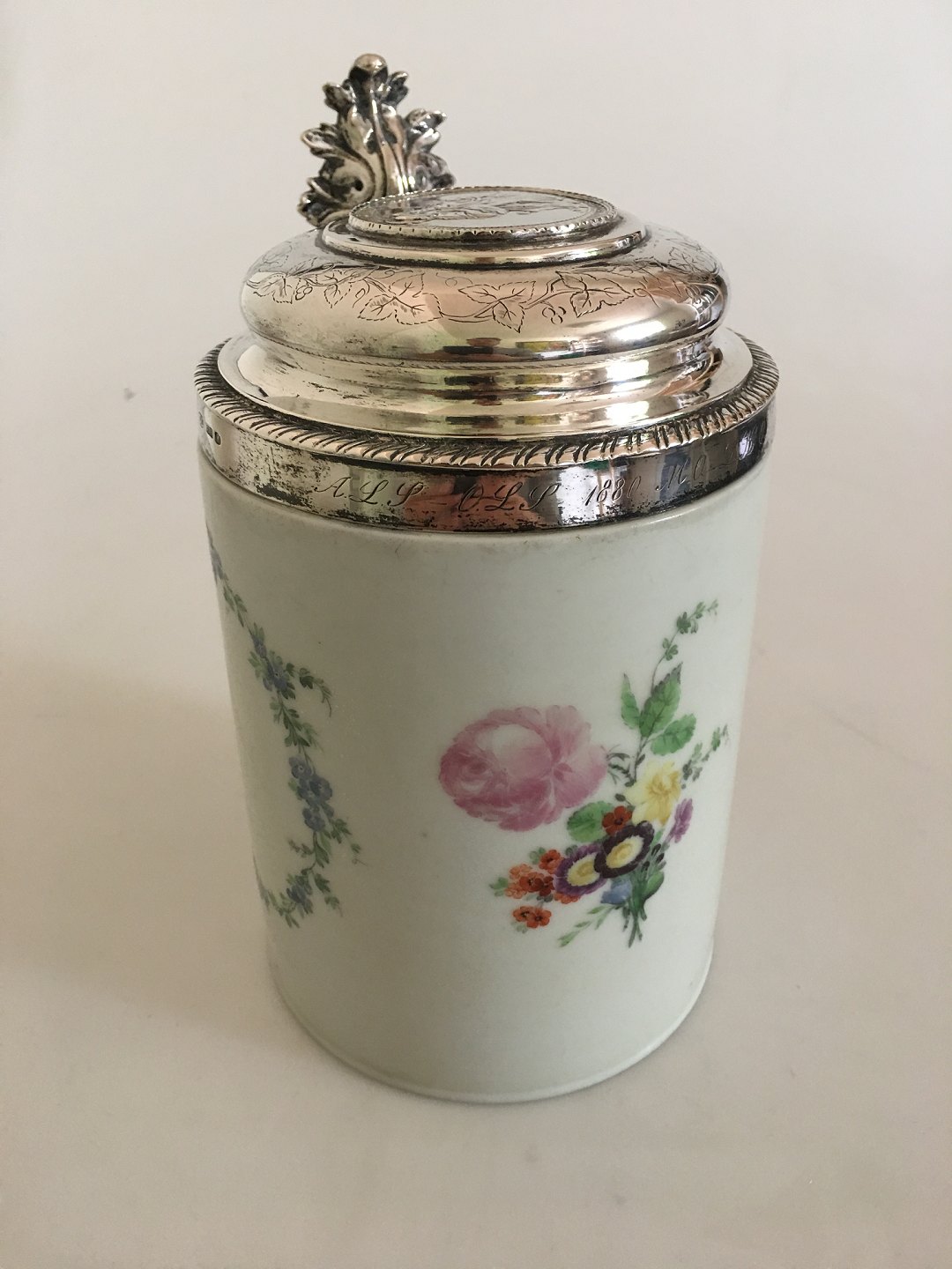 Royal Copenhagen Krus med Blomstermotiv og Sølv Låg Fra 1790-1810
