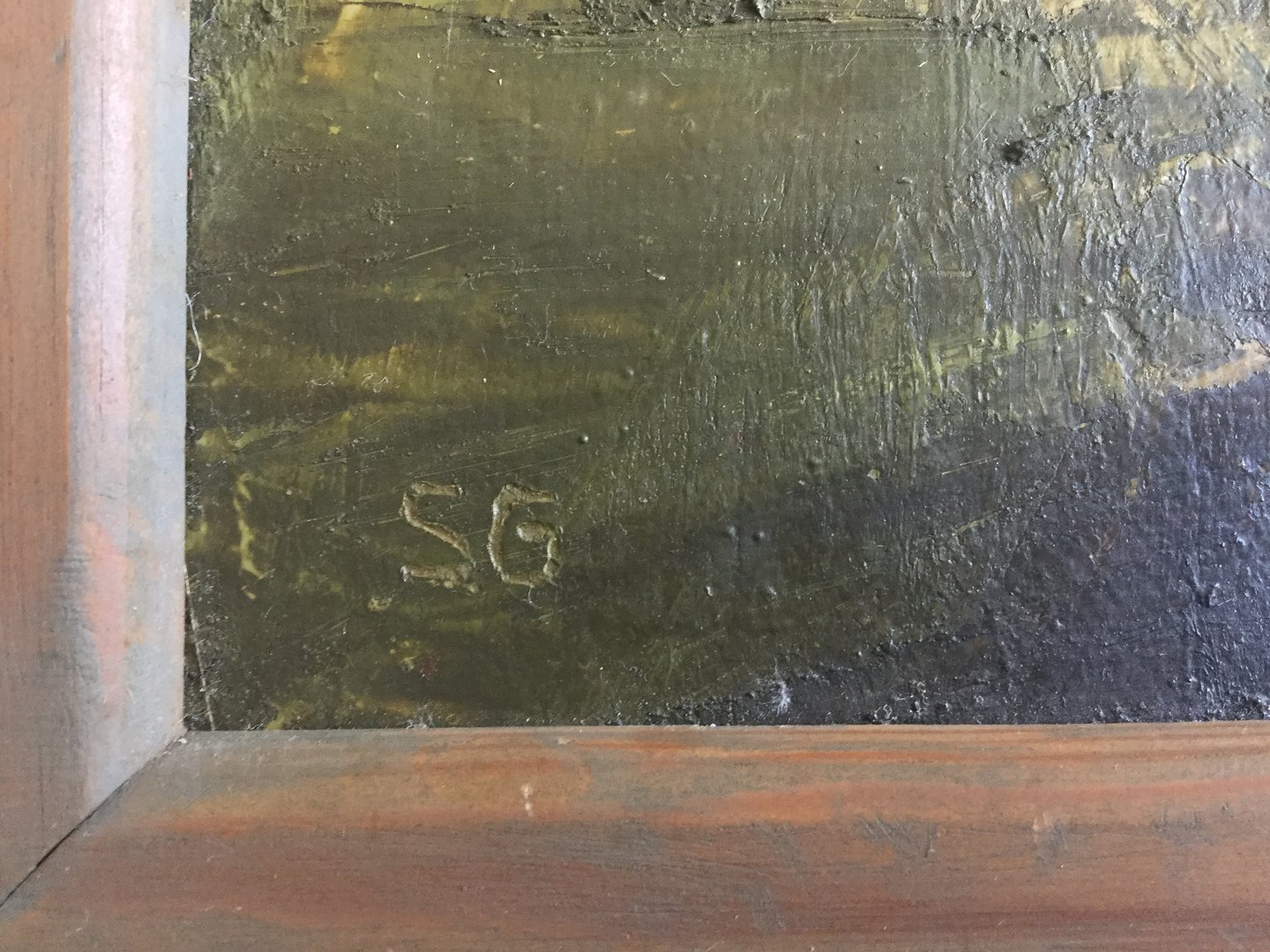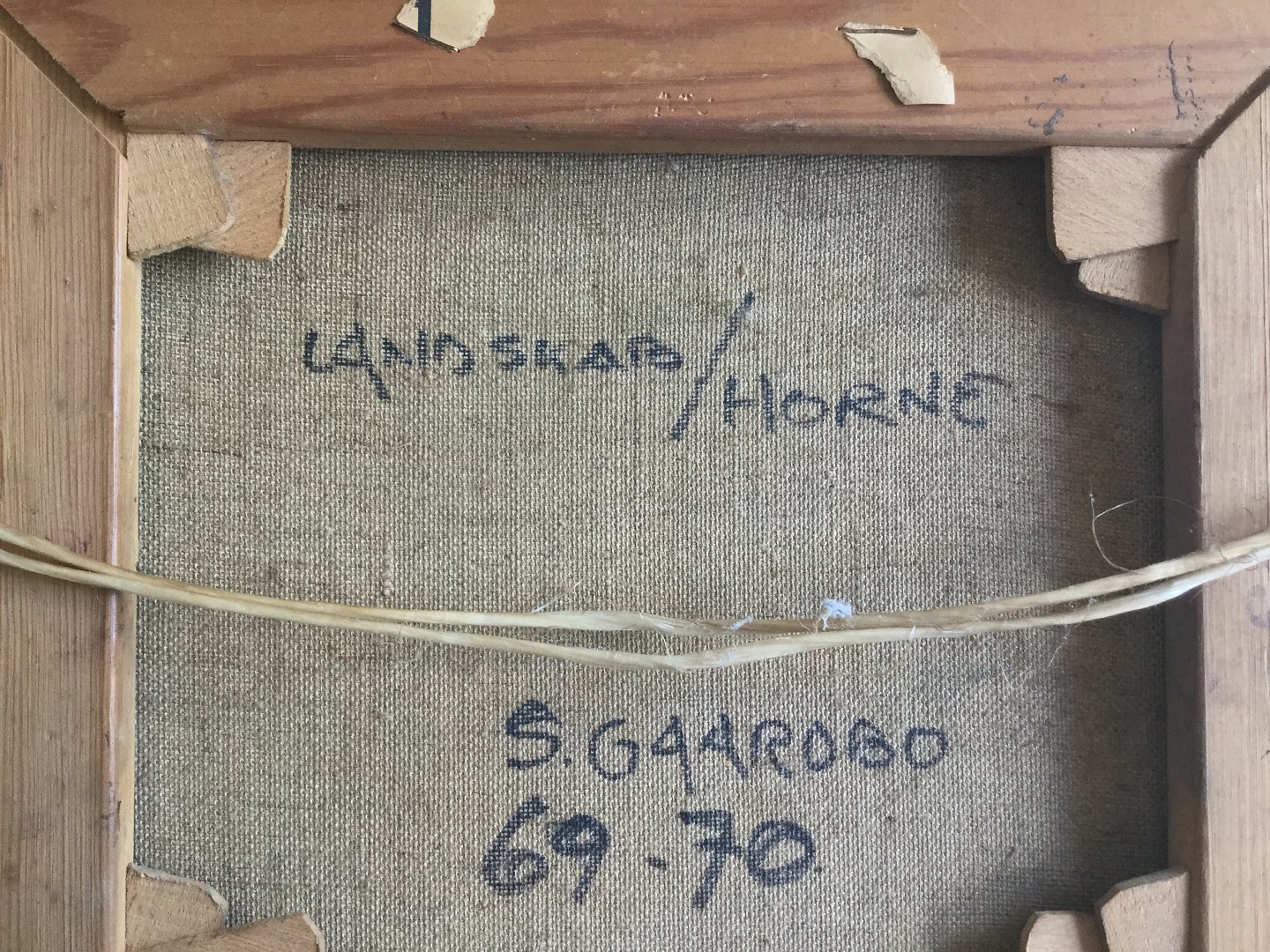 Text available in Danish: Maleri af Svend Gaardbo - Landskab, Horne 1969-70.