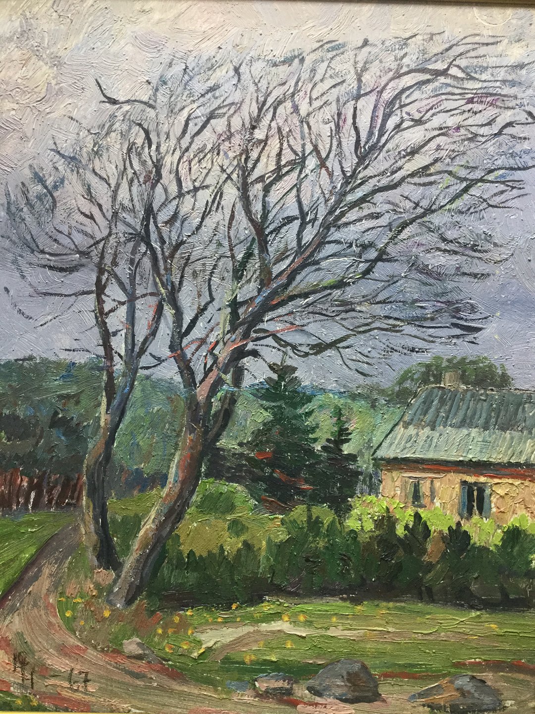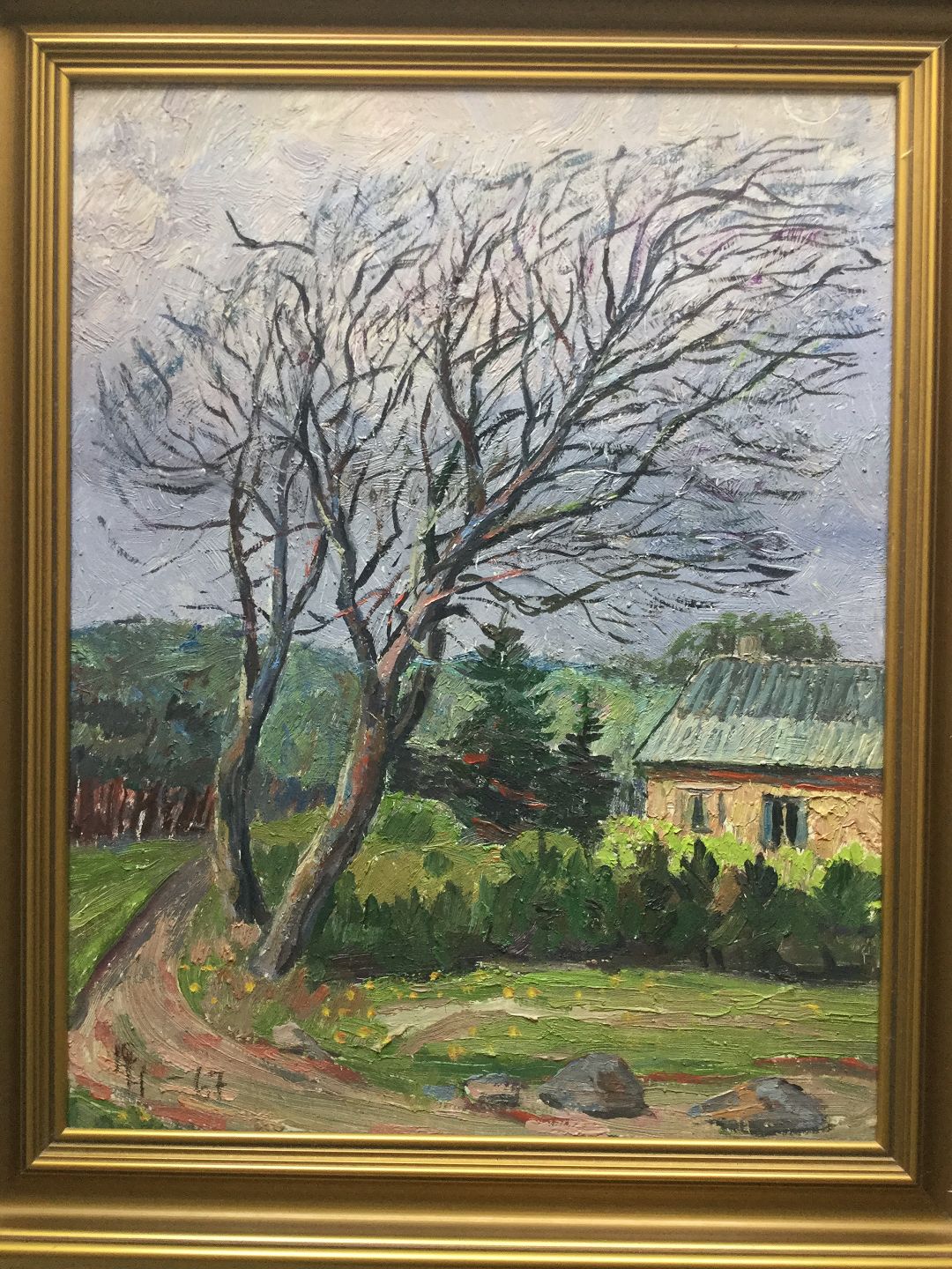 Maleri - forblæste træer ved vej 1967.