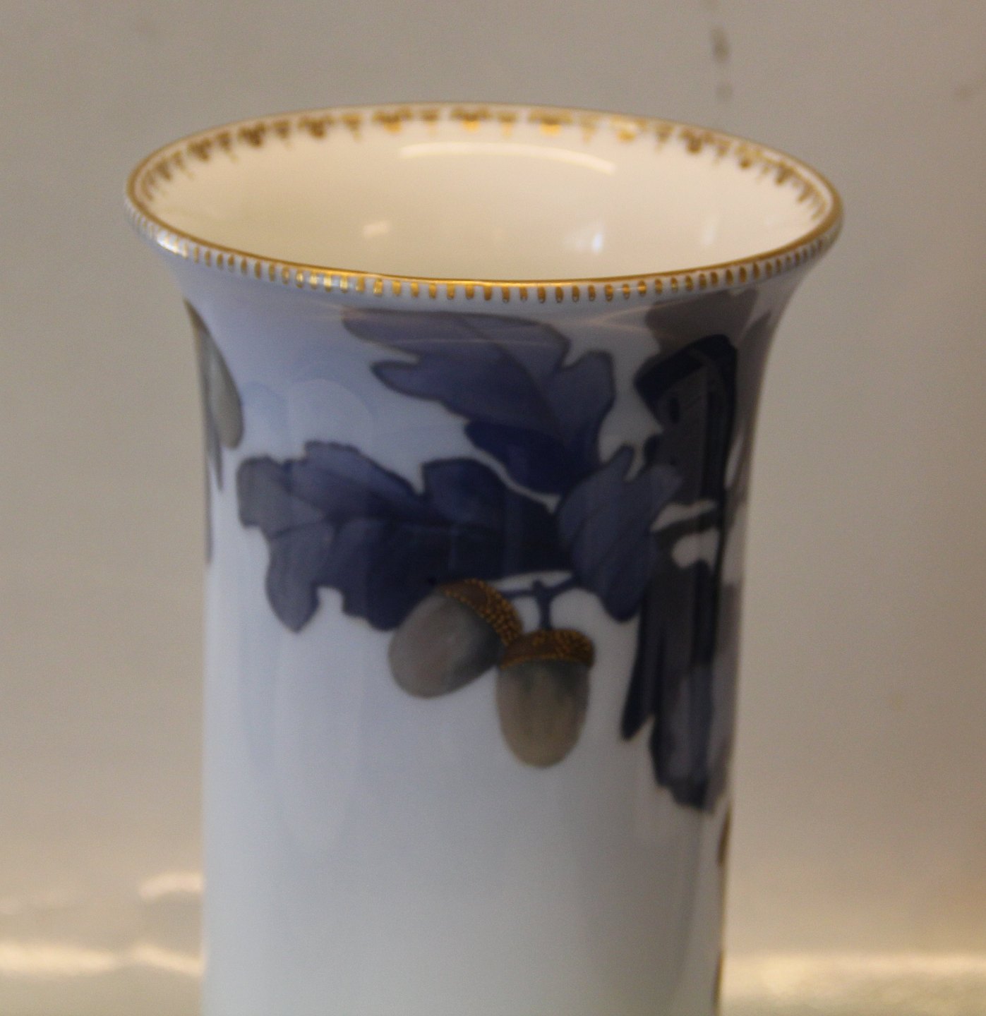Kongelig Dansk 1793-887 Kgl Skønvirkevase med egeløv og agern samt gulddekoration 24 cm Signeret J. H. B.