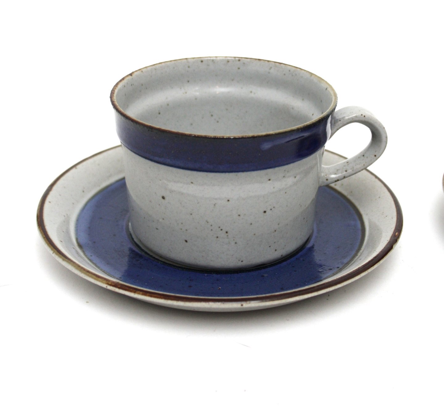 Knabstrup, Christine stentøjsstel grå glasur med blå kant. Designet af den tyske kunstner Christine Konschak, som var tilknyttet Knabstrup i perioden 1967-1970.