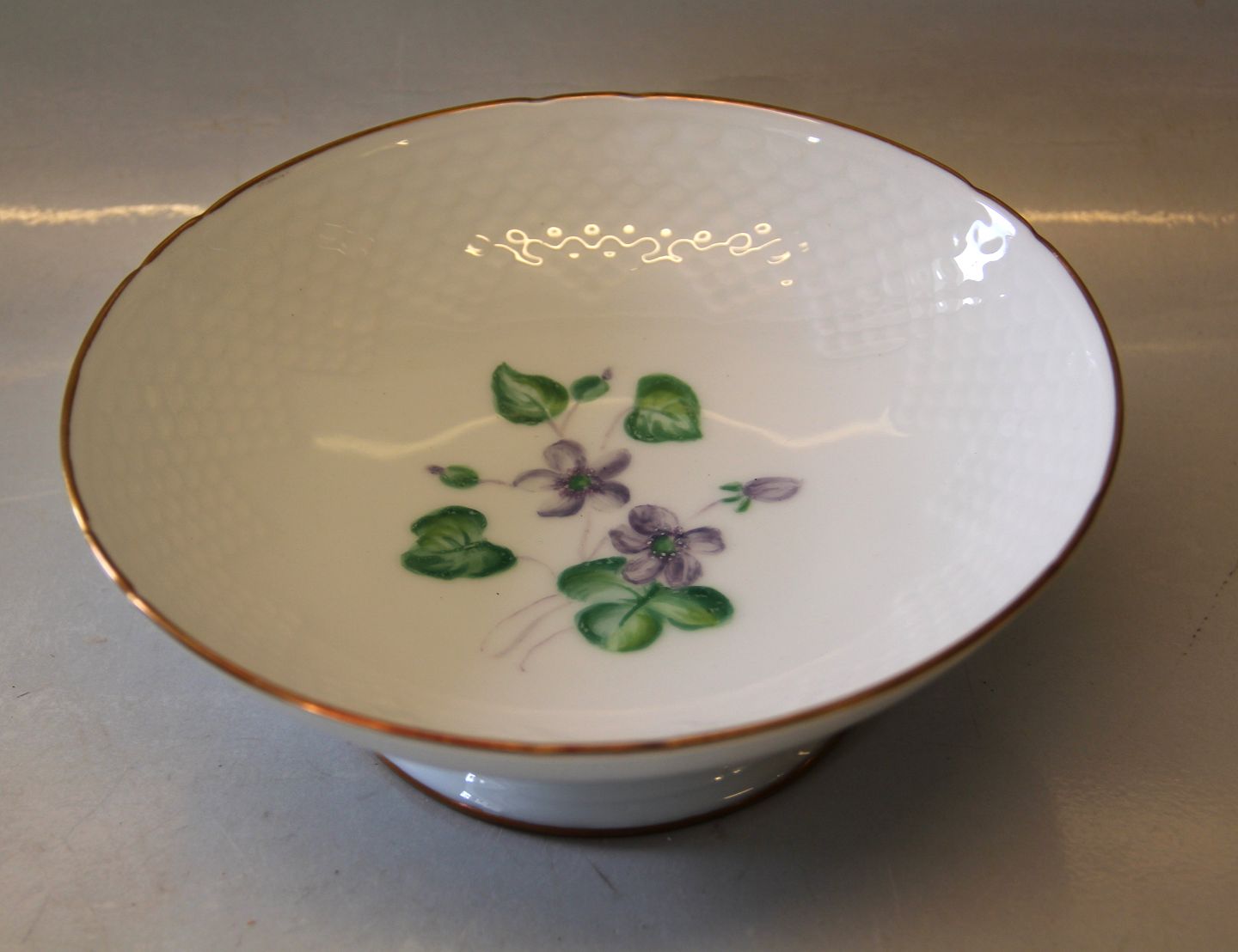 223 Skål på fod, (mellem) 7 x 20 cm (428) Blå Anemone Bing & Grøndahl Viol hvidt porcelæn I fin og hel stand