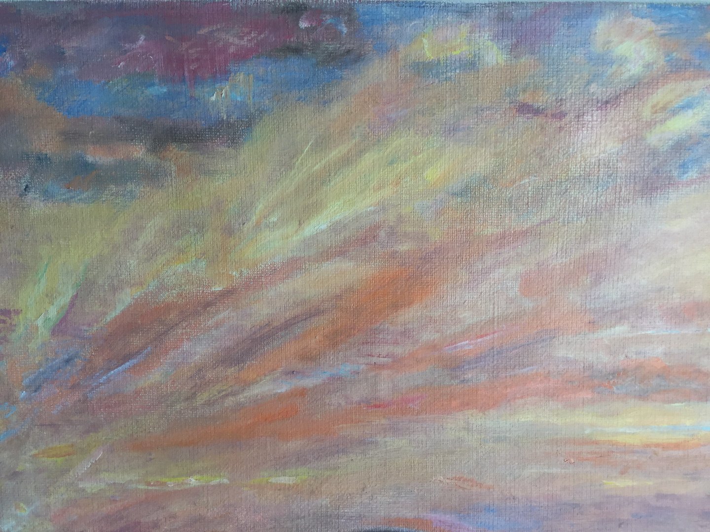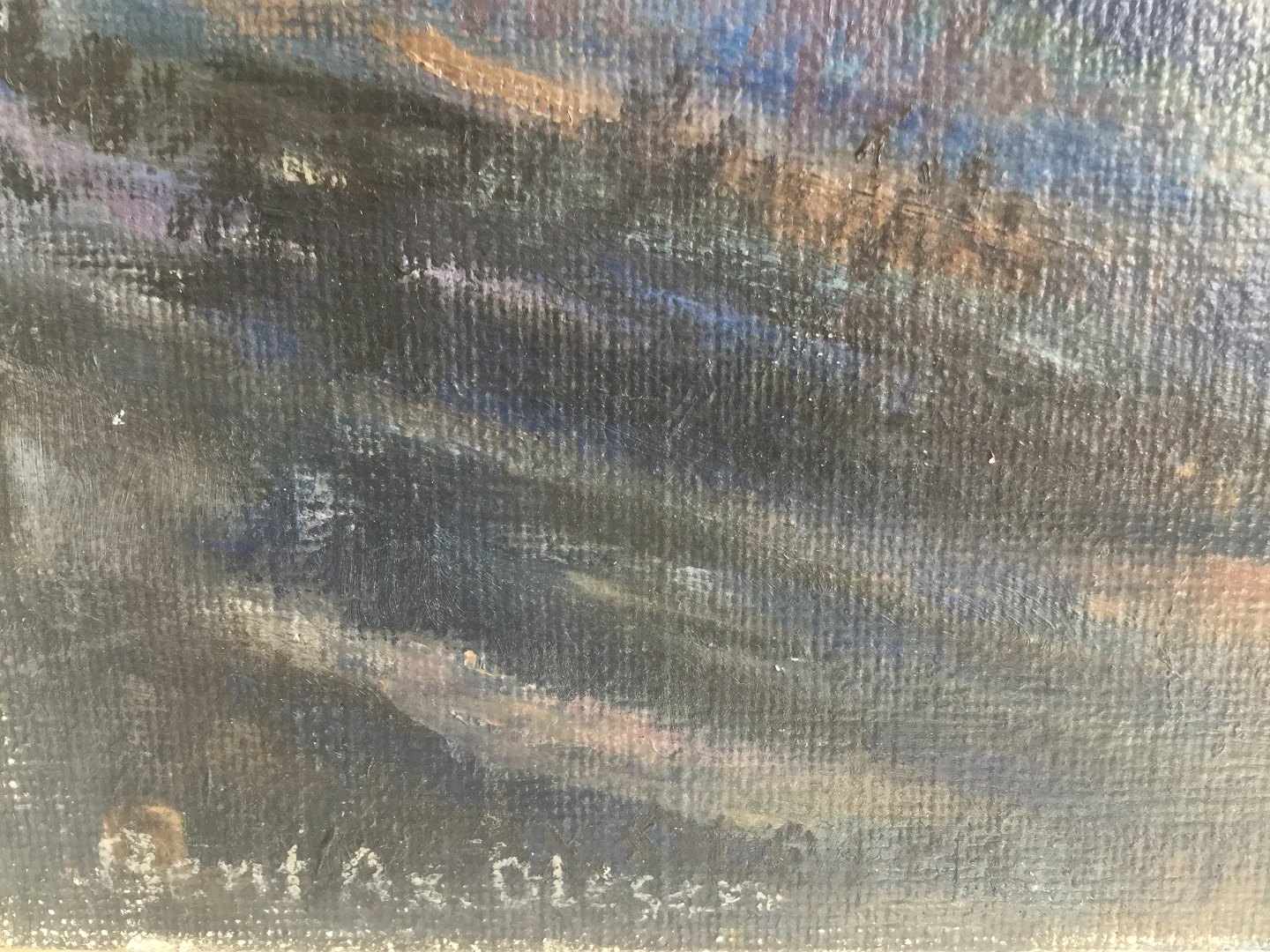 Maleri af Bent Axel Olesen - Huse ved solnedgang 1977.