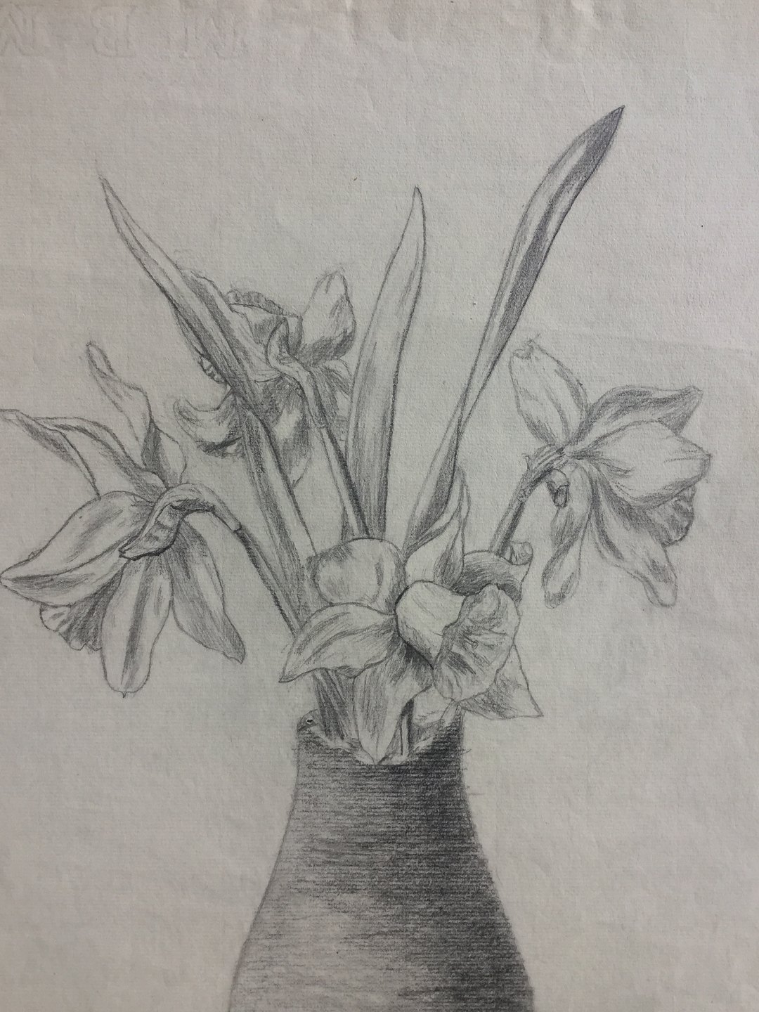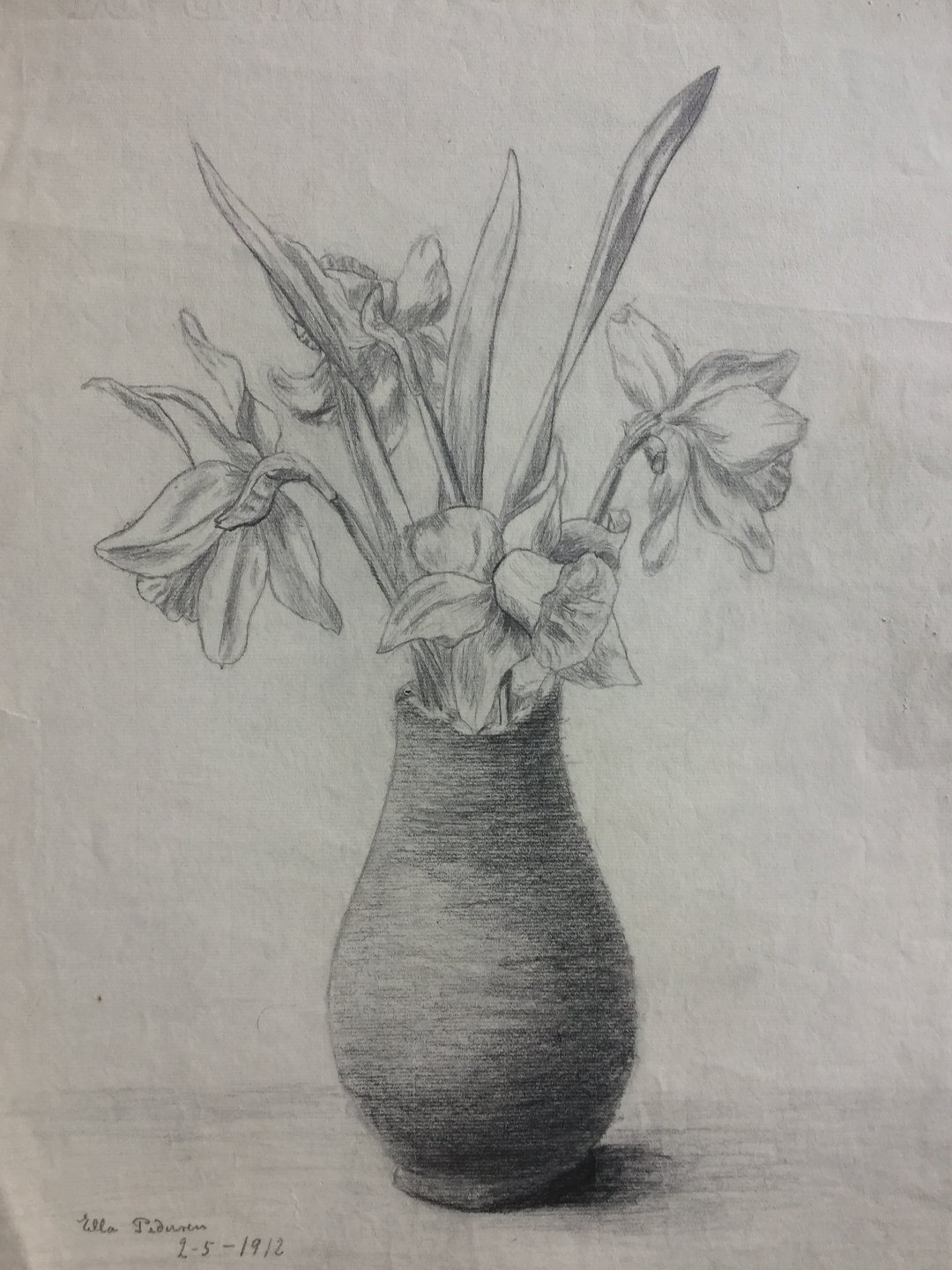 Tegning af Ella Pedersen 1912 - vase med påskeliljer.