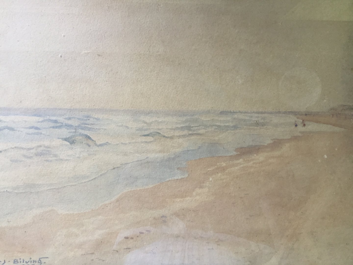 Akvarel af Emil J. Bilving - Strandparti 1938.