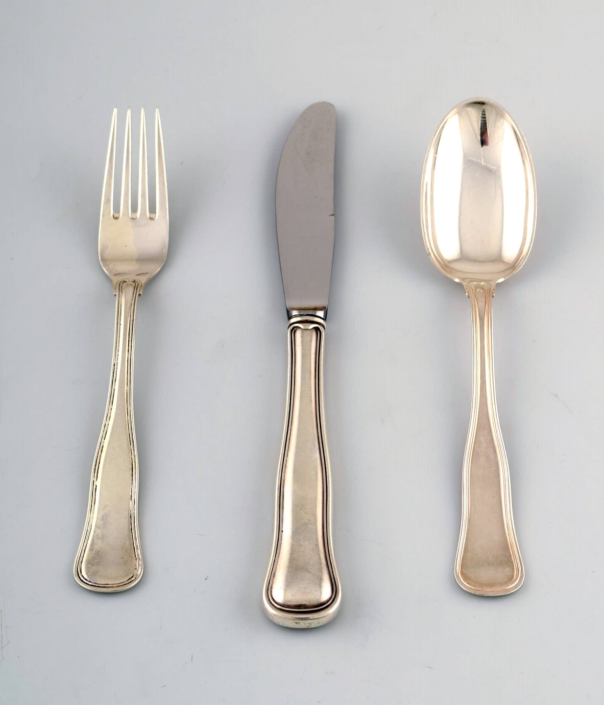 Cohr Dobbeltriflet sølvbestik til 6 personer. I alt 19 dele.