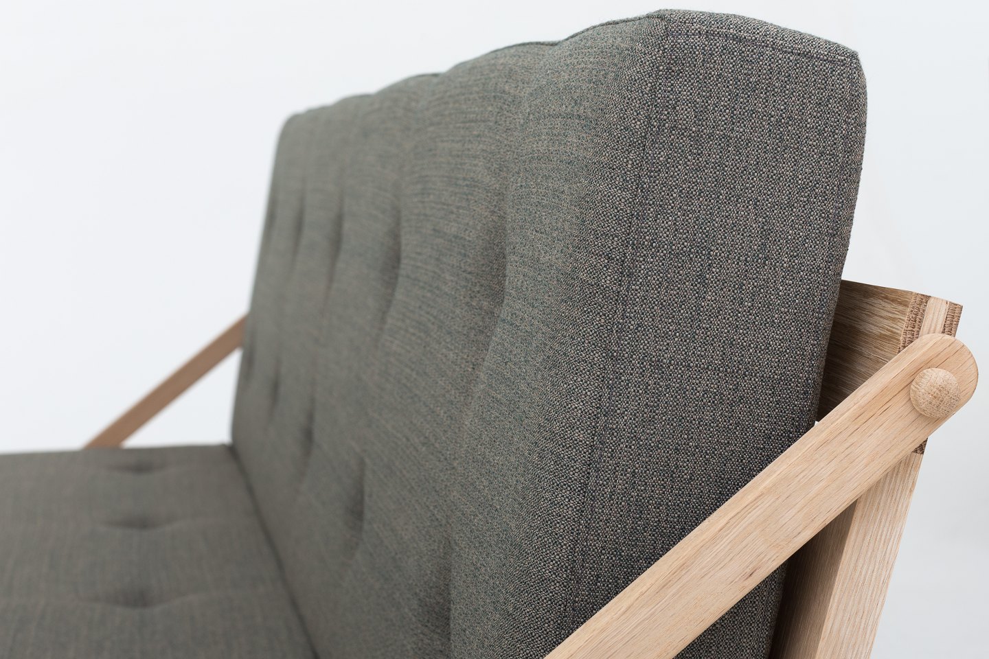 Daybed med stel i eg og hynder i Foss 952.