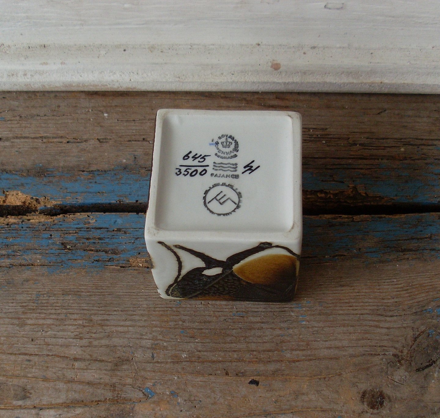 Royal Copenhagen Aluminia kunstfajance terning stage, Baca serien, Ellen Malmer.
