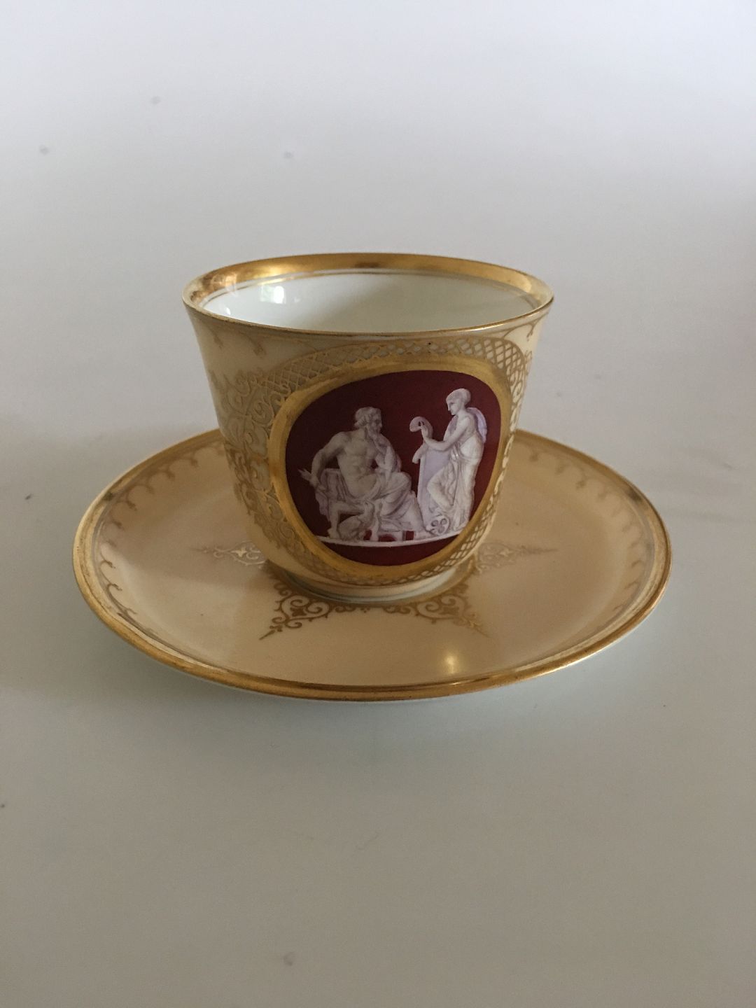 Royal Copenhagen Tidlig Kop og Underkop med Thorvaldsen motiv fra 1860-1880