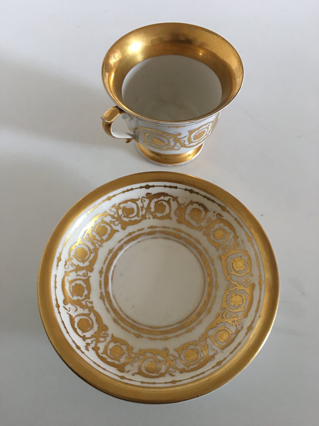 Royal Copenhagen Antik Morgen Kop og Underkop med Håndmalet Motiv af Børsen og Holmens Kirke fra 1820-1850.