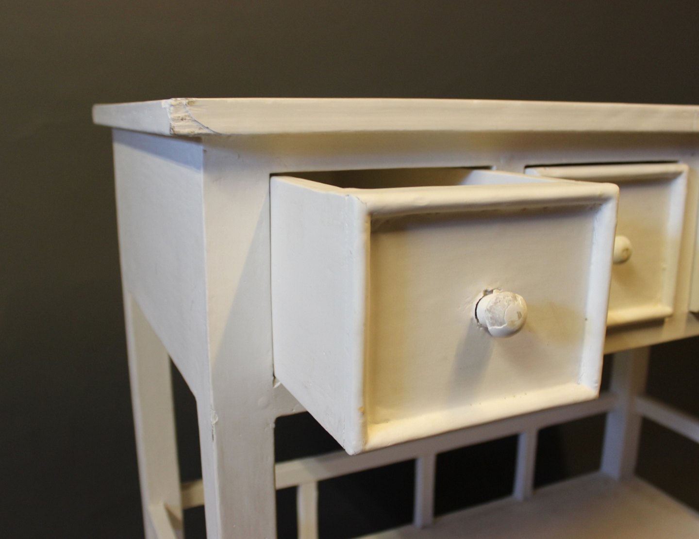 Hvid konsol i malet træ med hylde samt 4 mindre skuffer fra 1930erne.