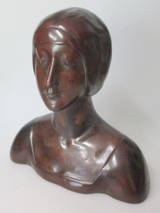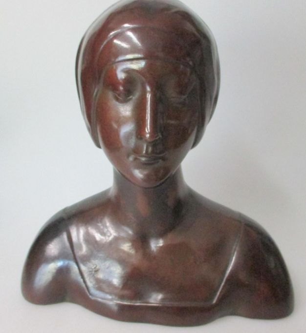 Tysk kunstner, ca. 1910: Torso af kvinde. Rødler med tynd kobberlægning. Højde: 21 cm. B.: 20 cm. Stemplet i bunden med produktions nummer: 1575.