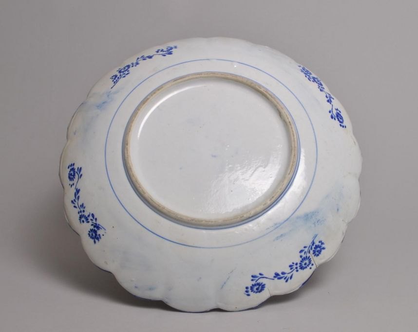 Imari fad, 19. årh. Japan. Med bølget rand. Polykrom dekoration med blomster. Delvis i transfer teknik. Dia.: 31,5 cm.