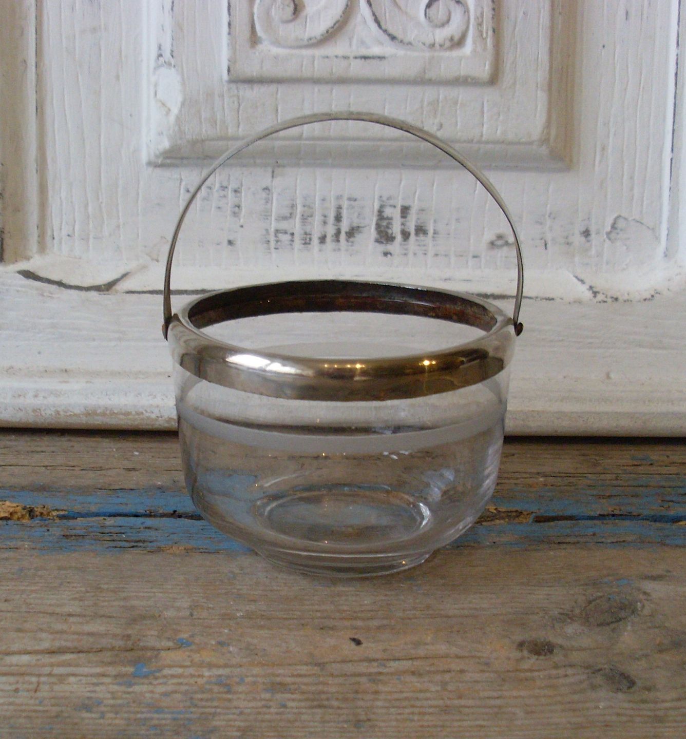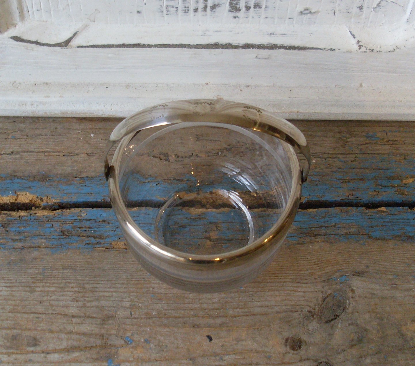 1800tals sukkerskål med båndslibning samt, forsølvet hank.