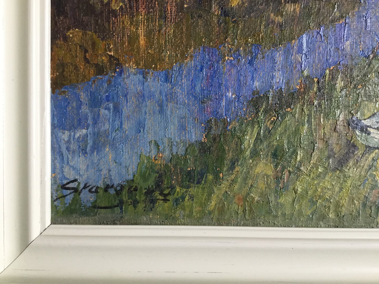 Maleri af C. Starberg - Landskab med åløb og ænder.