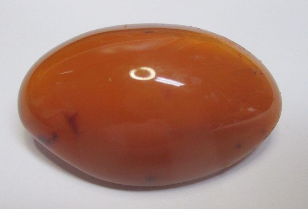 Poleret rav stykke, udformet som brosche, Danmark.