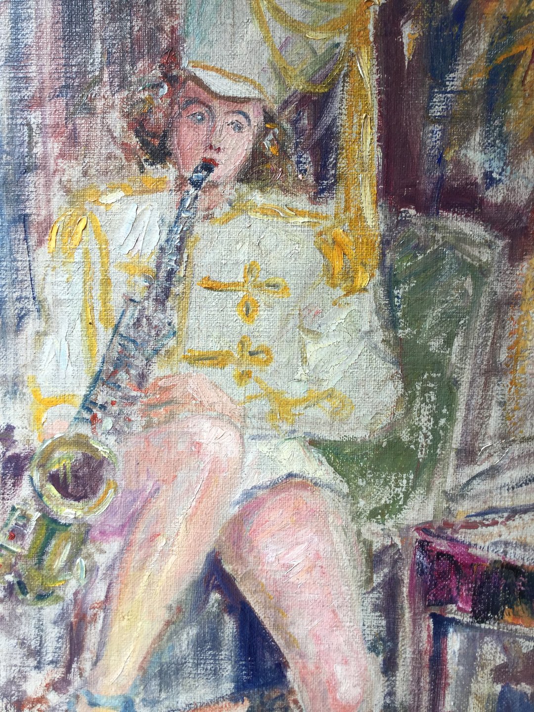 Maleri af H.J. Korn - pige i tamburmajorsuniform.