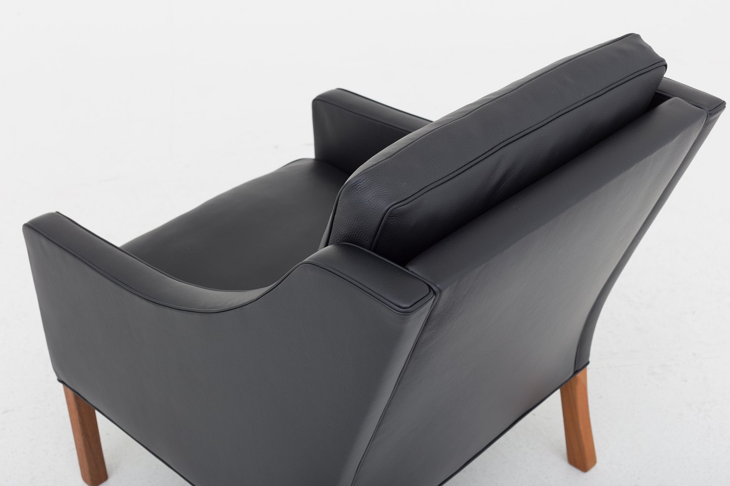 BM 2207 - Nybetrukket lænestol med sort læder og ben i teak
