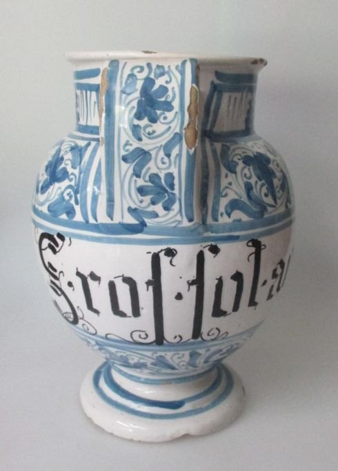 Fajance apoteker kande, Spanien, 1600 - 1700 tallet.