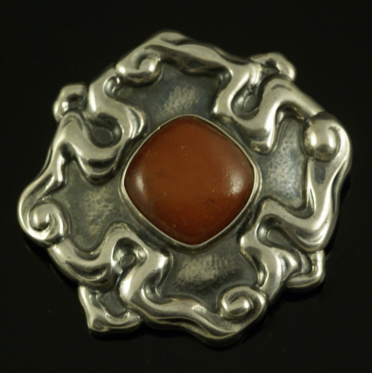 Carl M. Cohr. Skønvirke Broche i Sølv med rav.
