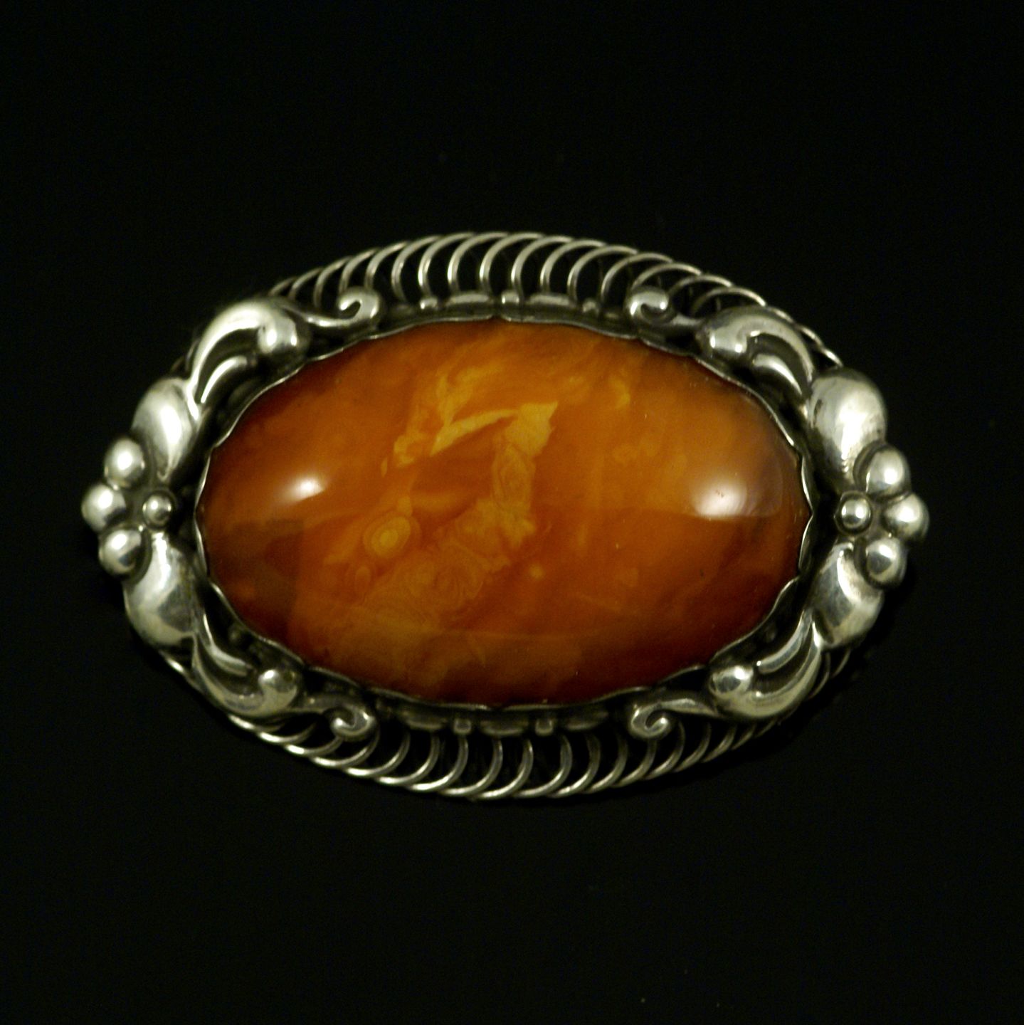 Danish Art Nouveau Silver Brooch with Amber - Ferdinand Svinth