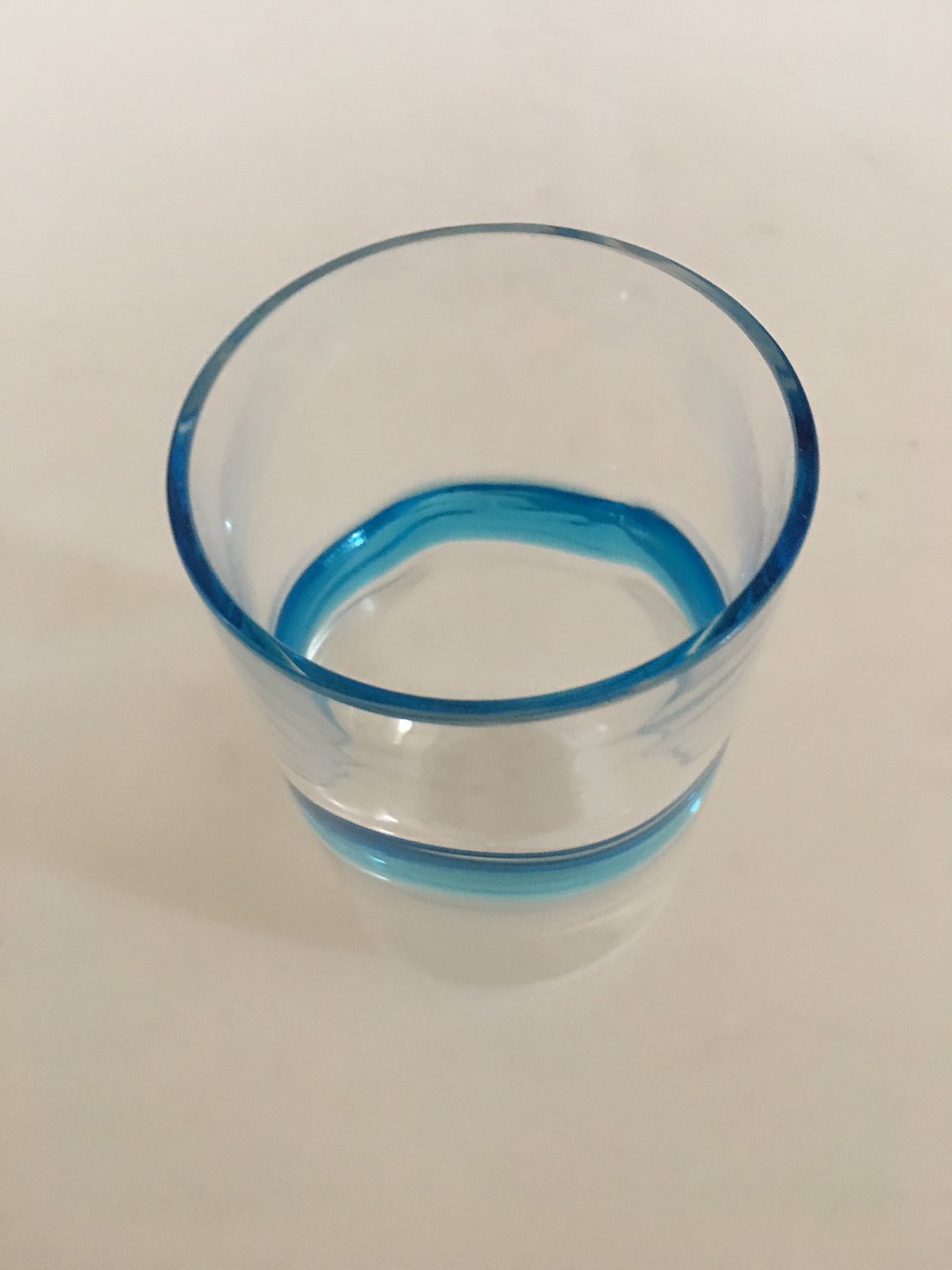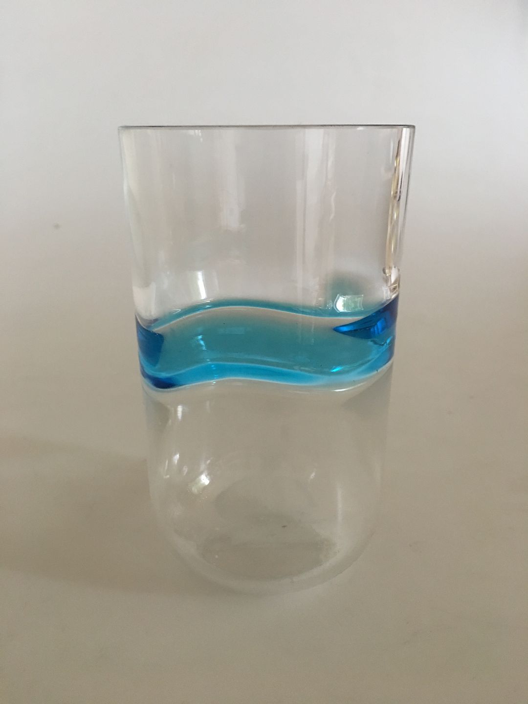 Blå Time Tumbler Glas fra Holmegaard. 13.5 cm H. 7.5 cm Ø. Designet 1971 af Christel og Christer Holmgren.