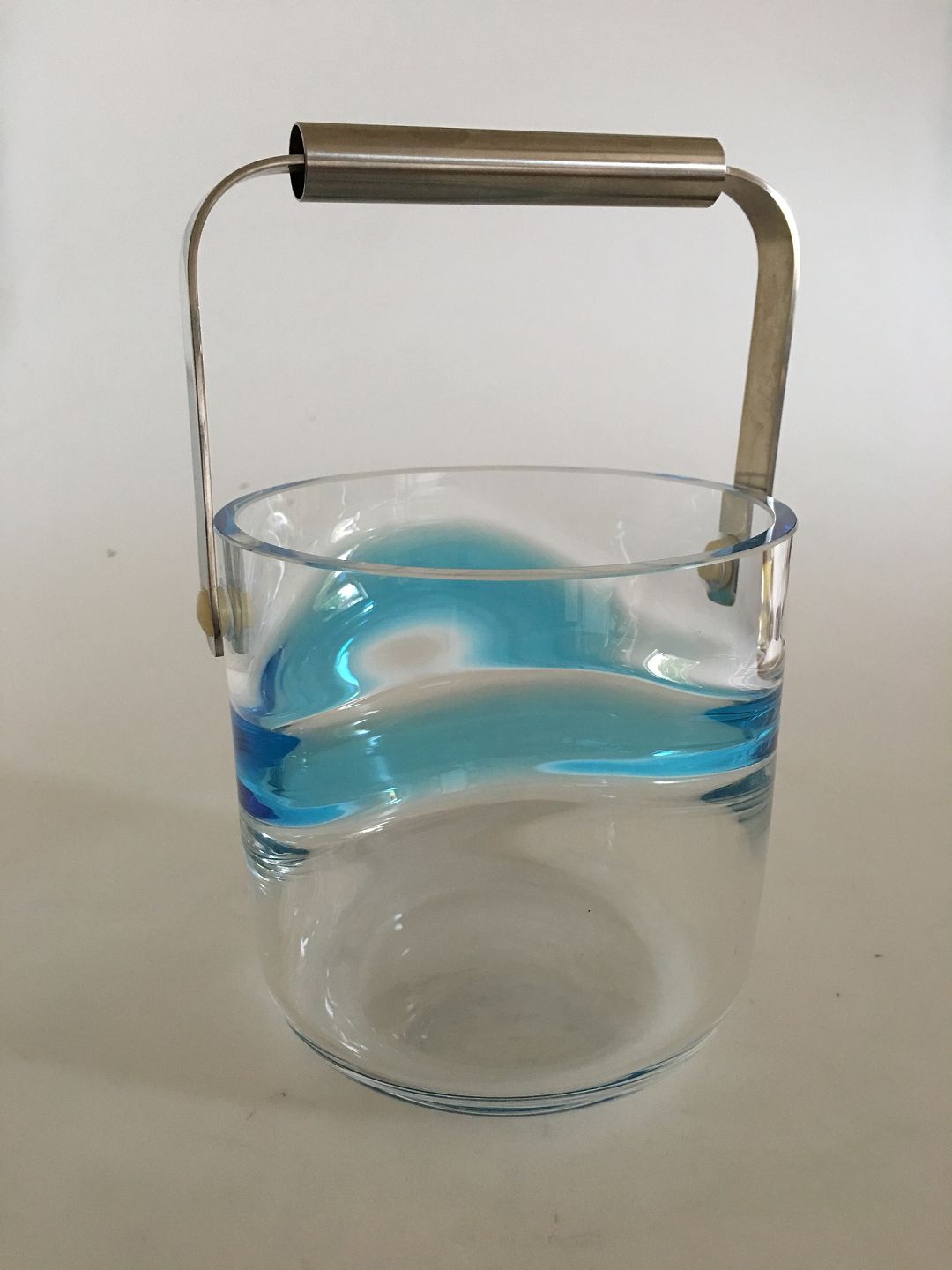 Blå Time Isspand i glas fra Holmegaard. 13 cm diameter. 13 cm høj. Designet 1971 af Christer og Christel Holmgren.