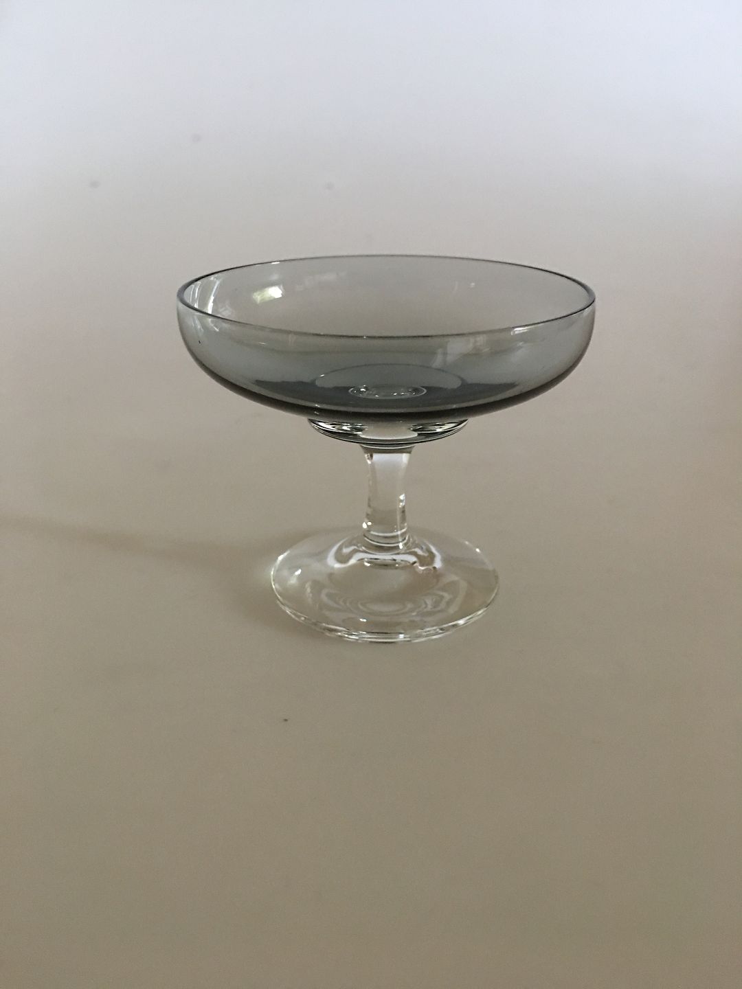 Holmegaard "Atlantic" Likørskål, Lille. 6 cm H. Røgfarvet glas med klar stilk. Designet af Per Lütken 1962.