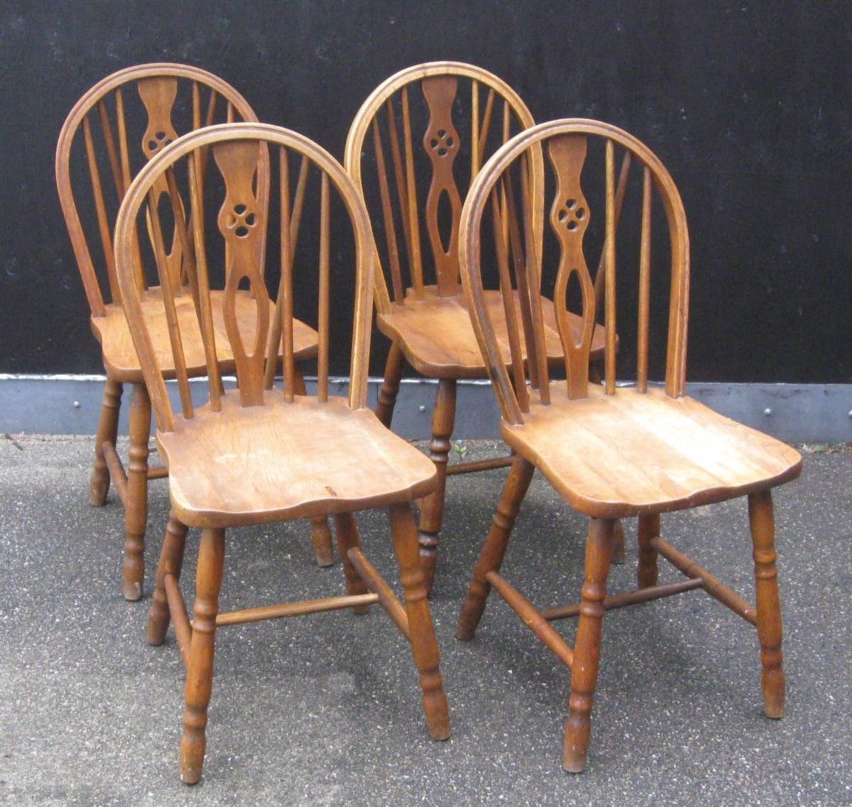 4 Windsorstole i egetræ, 20. årh. Med rund ryg.  H.: 90 cm., B.: 39 cm. og D.: 50 cm.