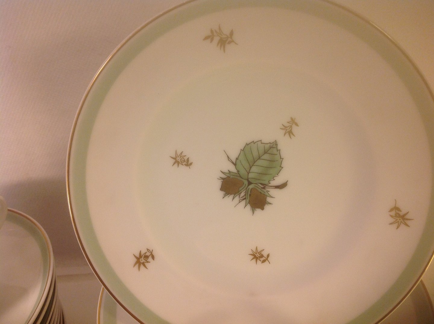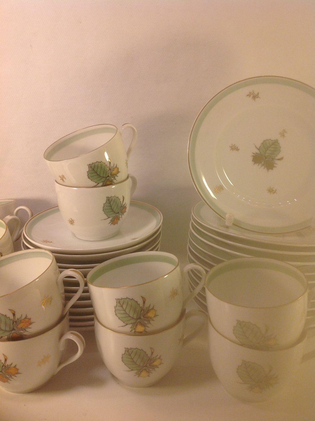 Kop og underkop 1,25 dlB&G nr 305)Hasselnød Bing & Grøndahl B&G ,Hvidt porcelæn med hasselnødder i guld, grønne blade, grønt bånd og guldkant.