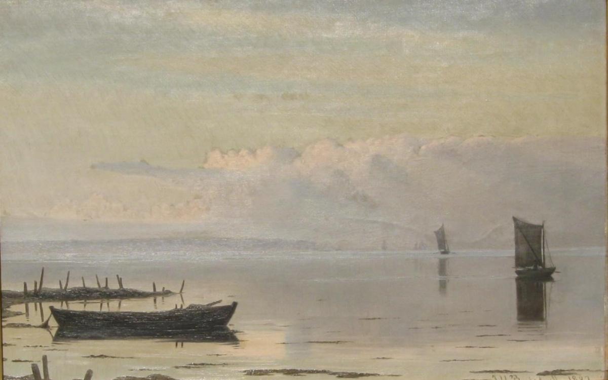 Bredsdorff, Johan Ulrik (1845 - 1928): Tidlig sommer eftermiddag. Motiv ved Øresund. Sign.: I. U. Bredsdorff, 1882. Olie på lærred. 47 x 73 cm.