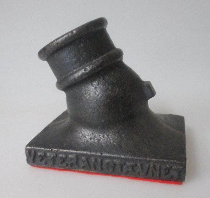 Kanon, mørser, som brevpresse. 1914. Danmark. Fra veteran stævnet. Støbejern. Veteranstævnet var til minde om 50. året for slaget ved Fredericia. 9x9x7 cm.