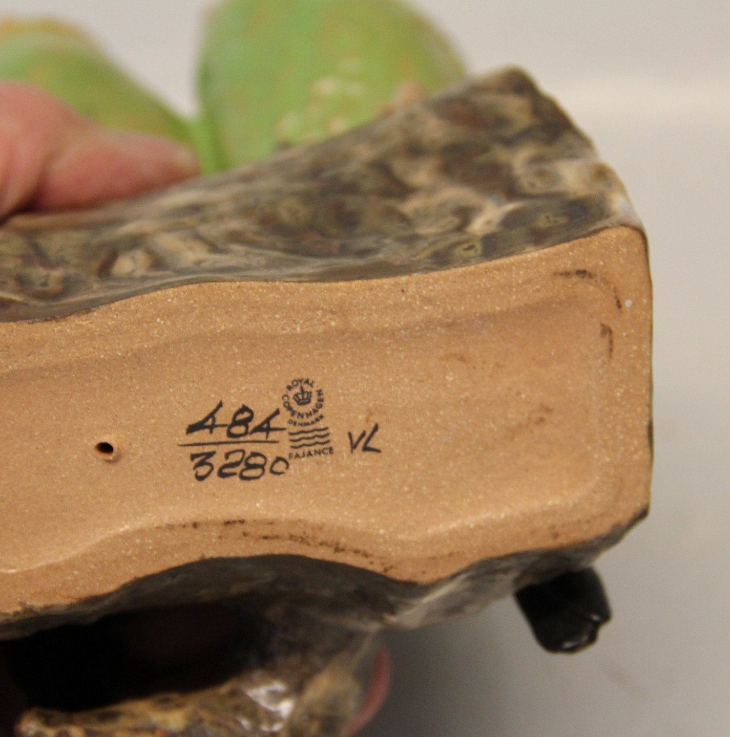 Royal Copenhagen Aluminia Faience 3280-484 Budgie 15.8 cm Jeanne Grut Two green birds